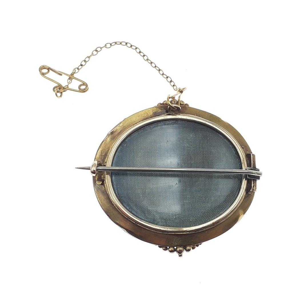 An ornate VICTORIAN 19th century unmarked yellow metal mourning brooch with central pearl, possibly 9kt, but could be 15kt, but alas no stamp - sold as described - weight gross 12.22g approx - dimensions width 4.5cm x height 4.5cm approx