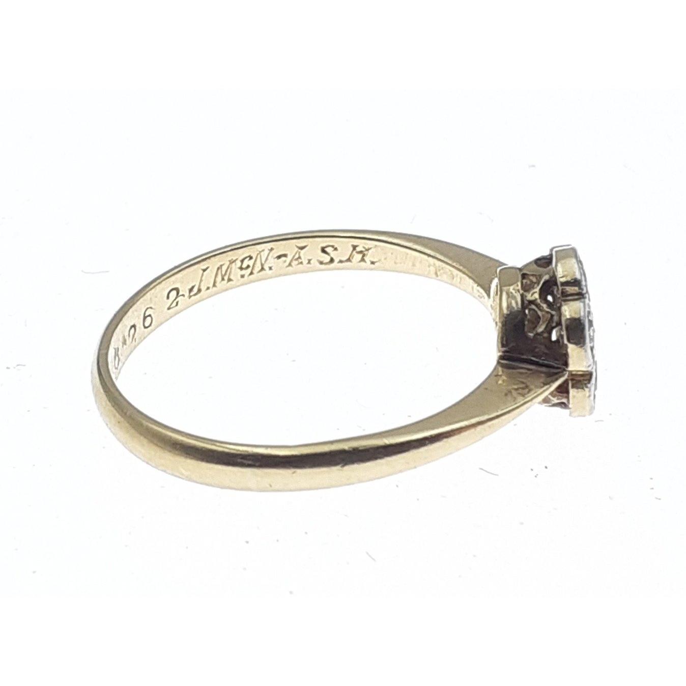 Unmarked yellow metal DIAMOND (tested) flare head ring millgrain edging/setting seen commonly from turn of 20th century perhaps until 1930's & 1940's. Knife edge shoulders = 28-07-28 dated on the inside - ring size I/J - gross weight 1.65g