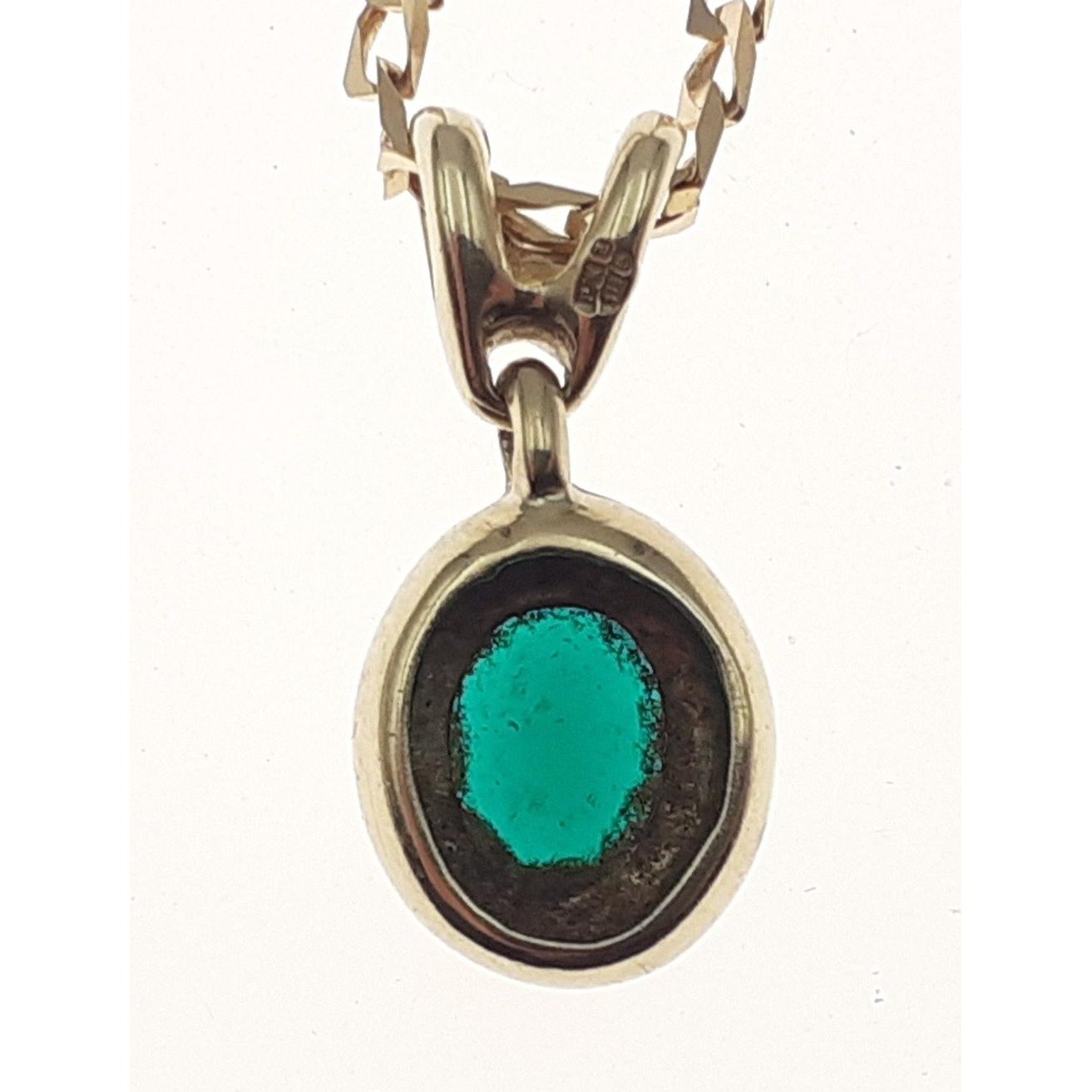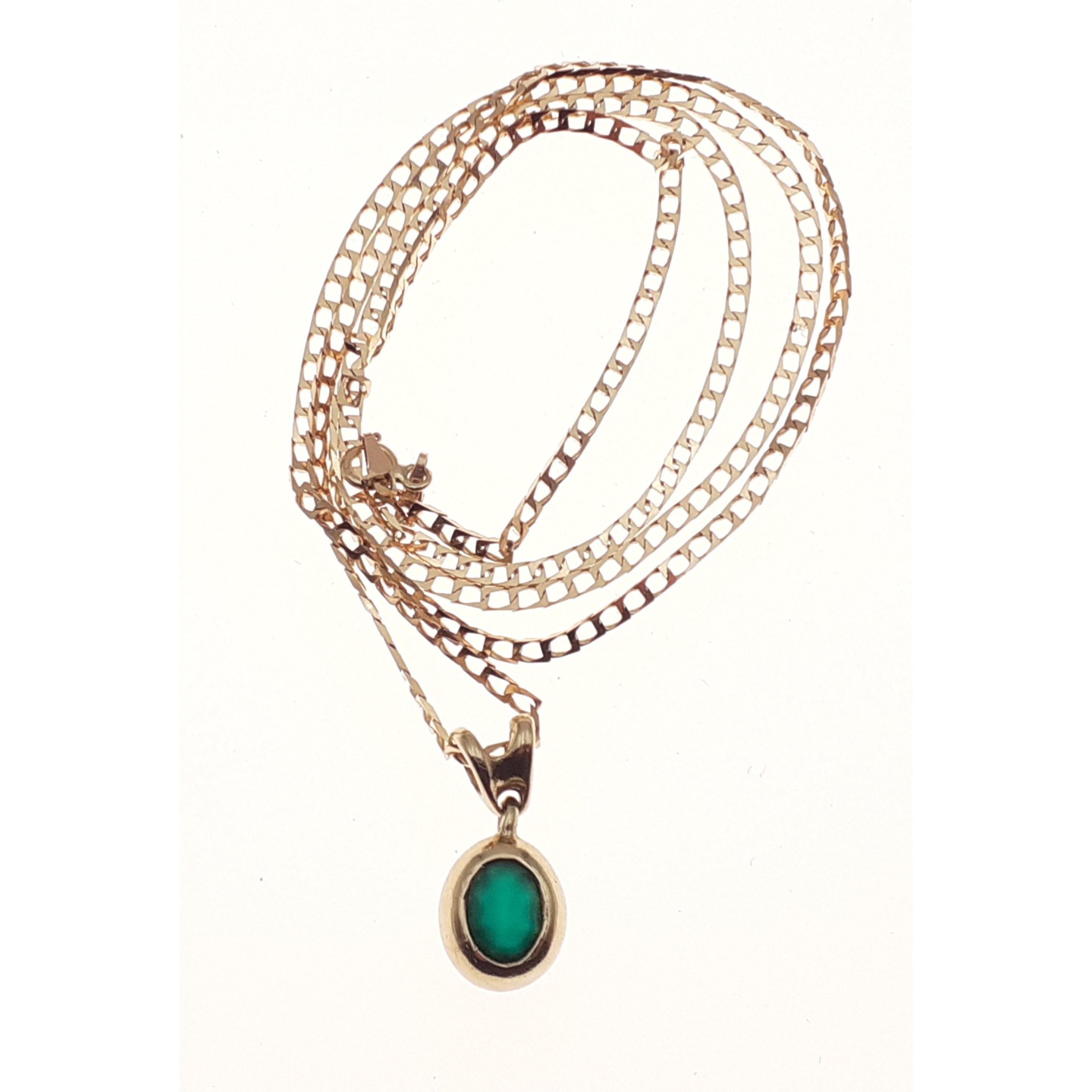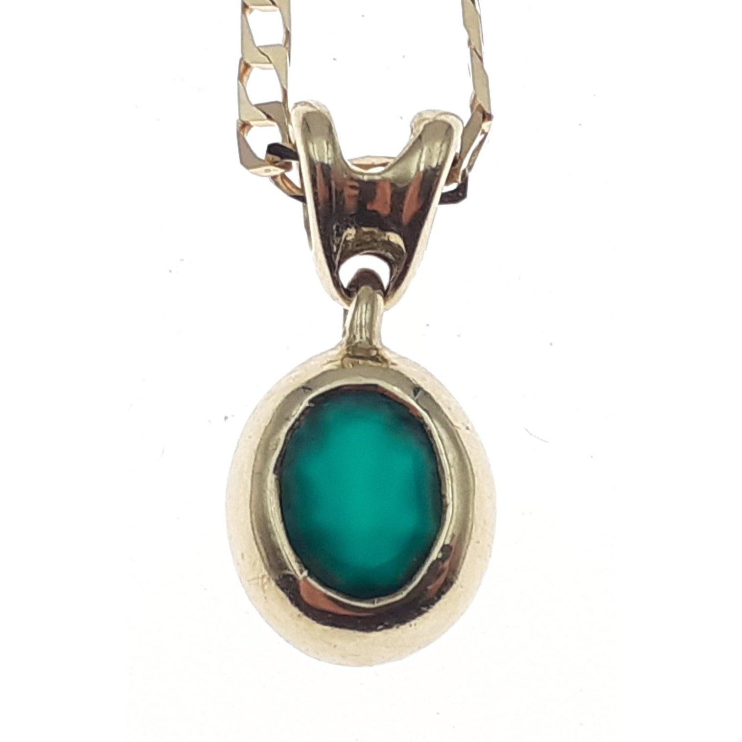 A 375 stamped green stone pendant necklace on a 9k stamped chain - gross weight 6.79g approx - length of chain 60cm approx