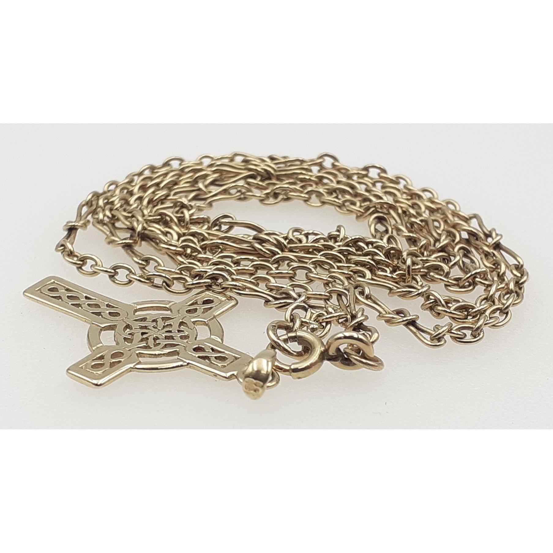A 375 stamped chain with a 375 stamped Celtic cross - total weight 9.90g approxApprox 2 pieces