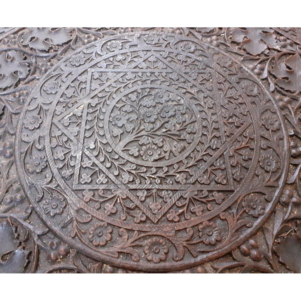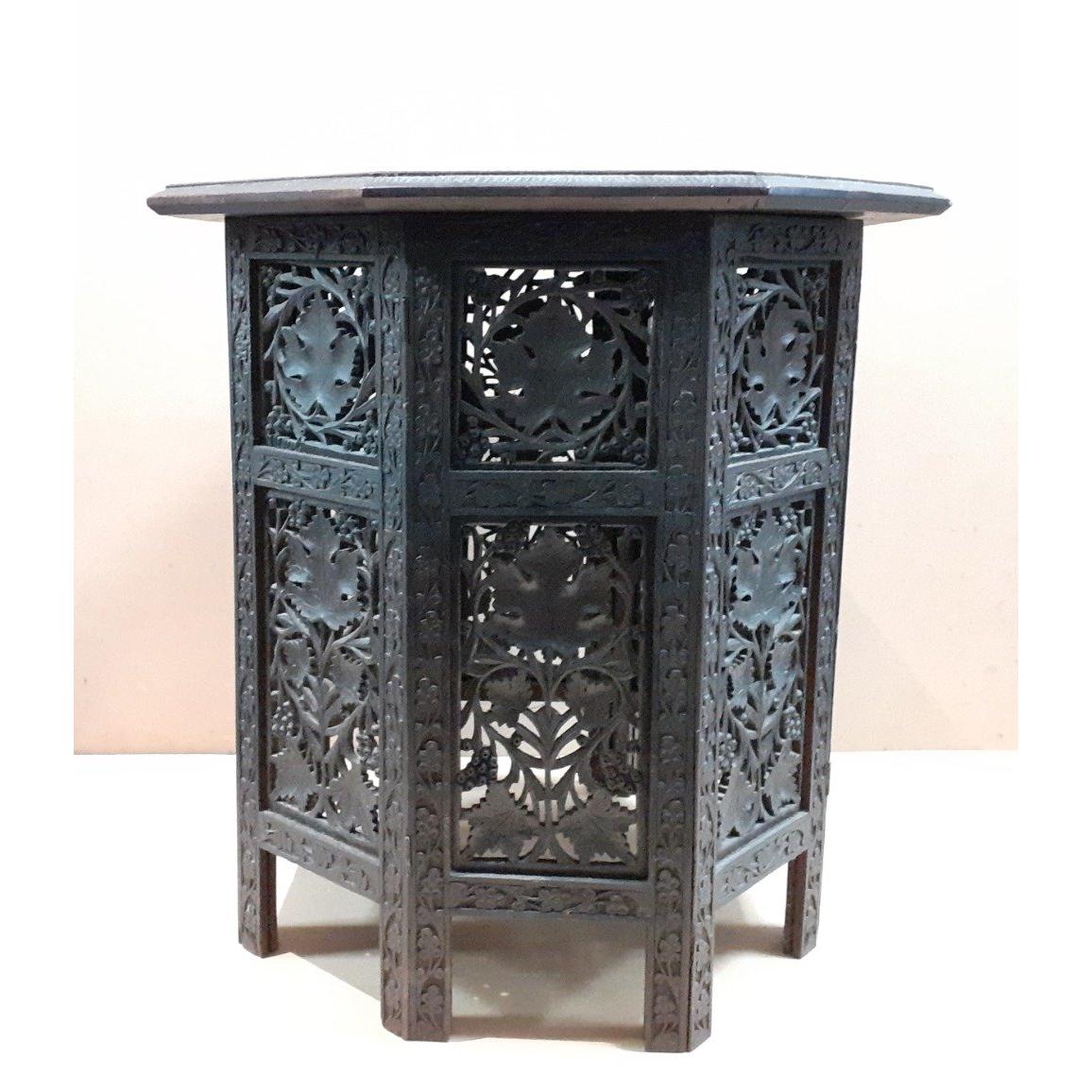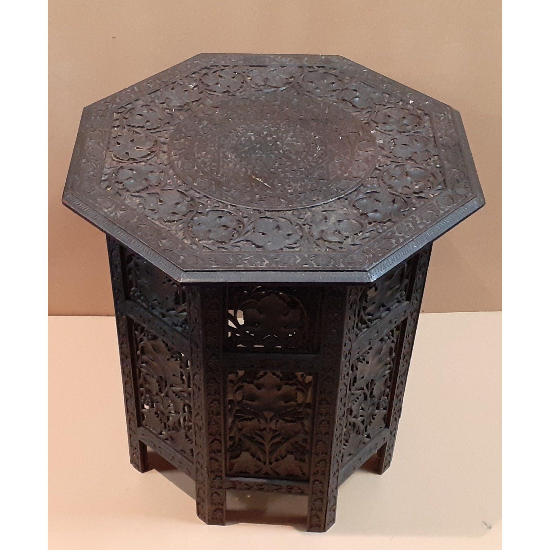 A folding Indian collapsible dark wood octagonal table in good condition.