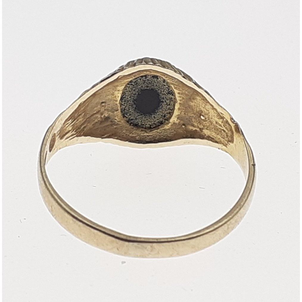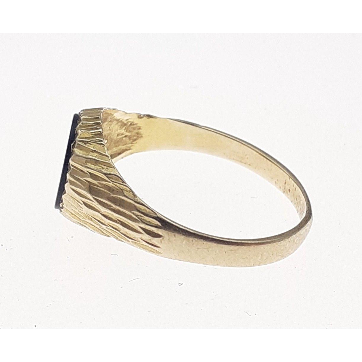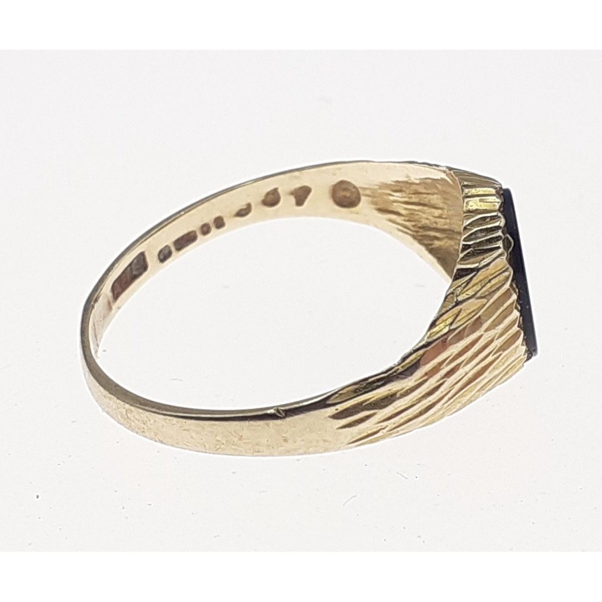 Gents hallmarked 9ct gold signet ring size N with black centre stone. Gross weight 1.5g approx