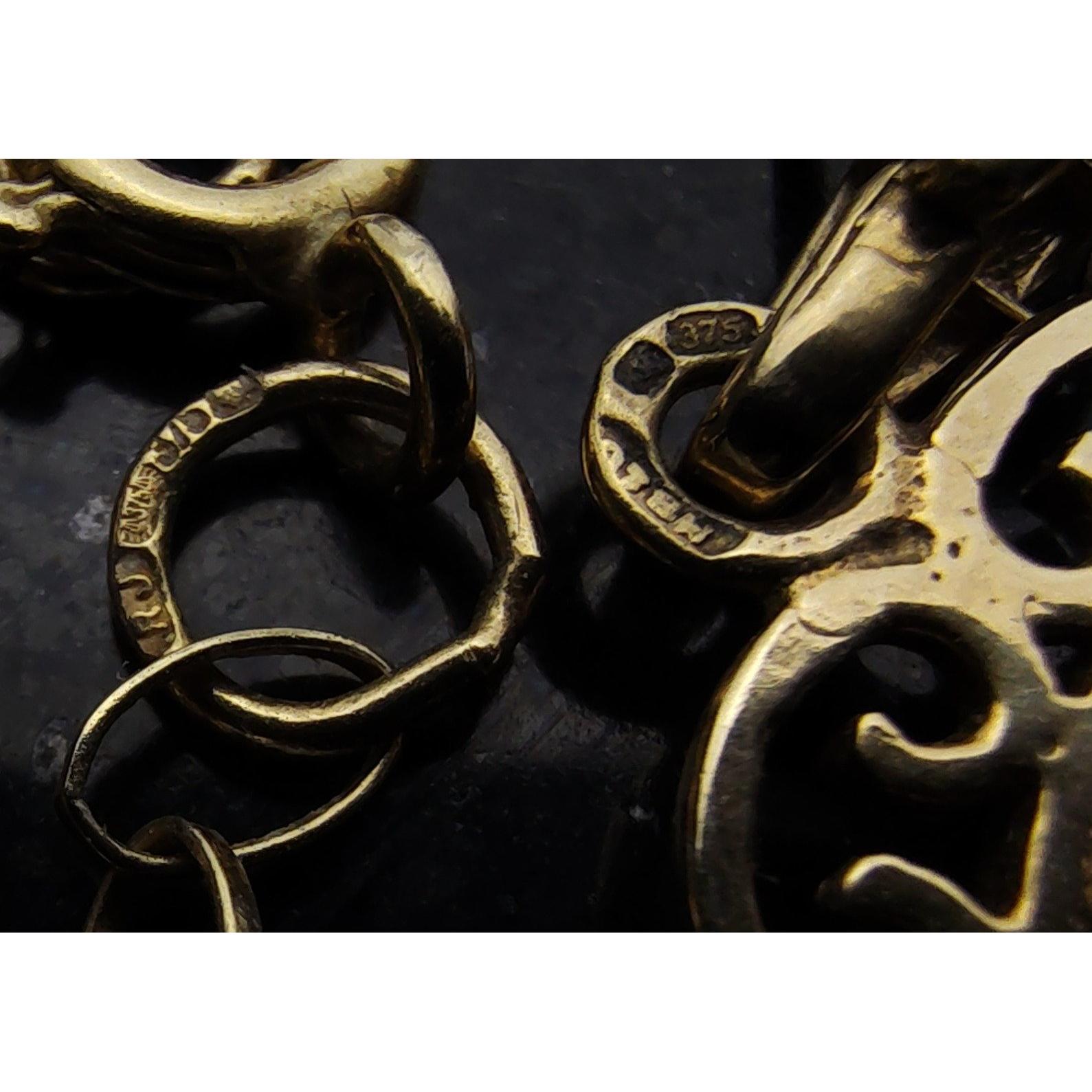 A fully hallmarked 375 / 9ct pendant with initial A design on 375 chain. 52cm chain, 5.2g gross