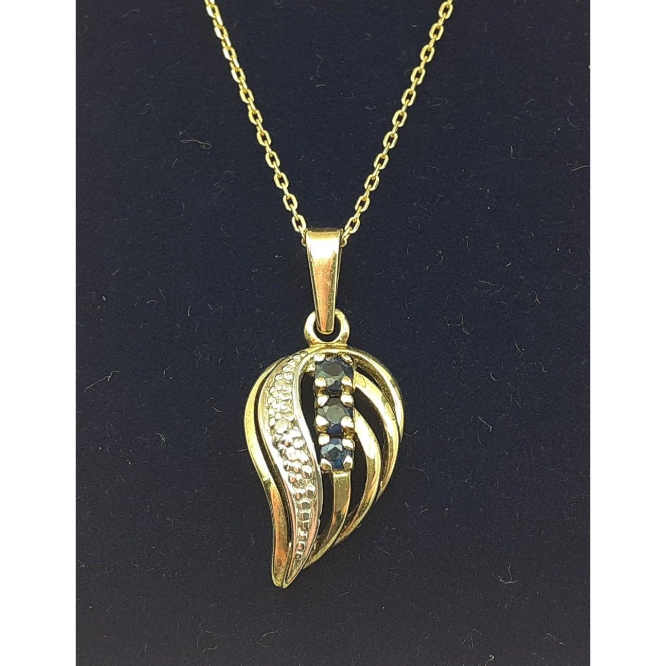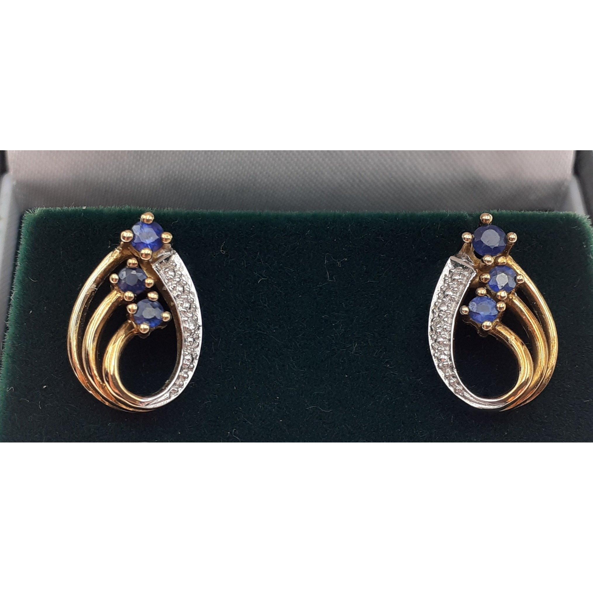 Beautiful 375 stamped pendant and earring set each with sapphires and small diamond chips. Gross weight 4.7g approx