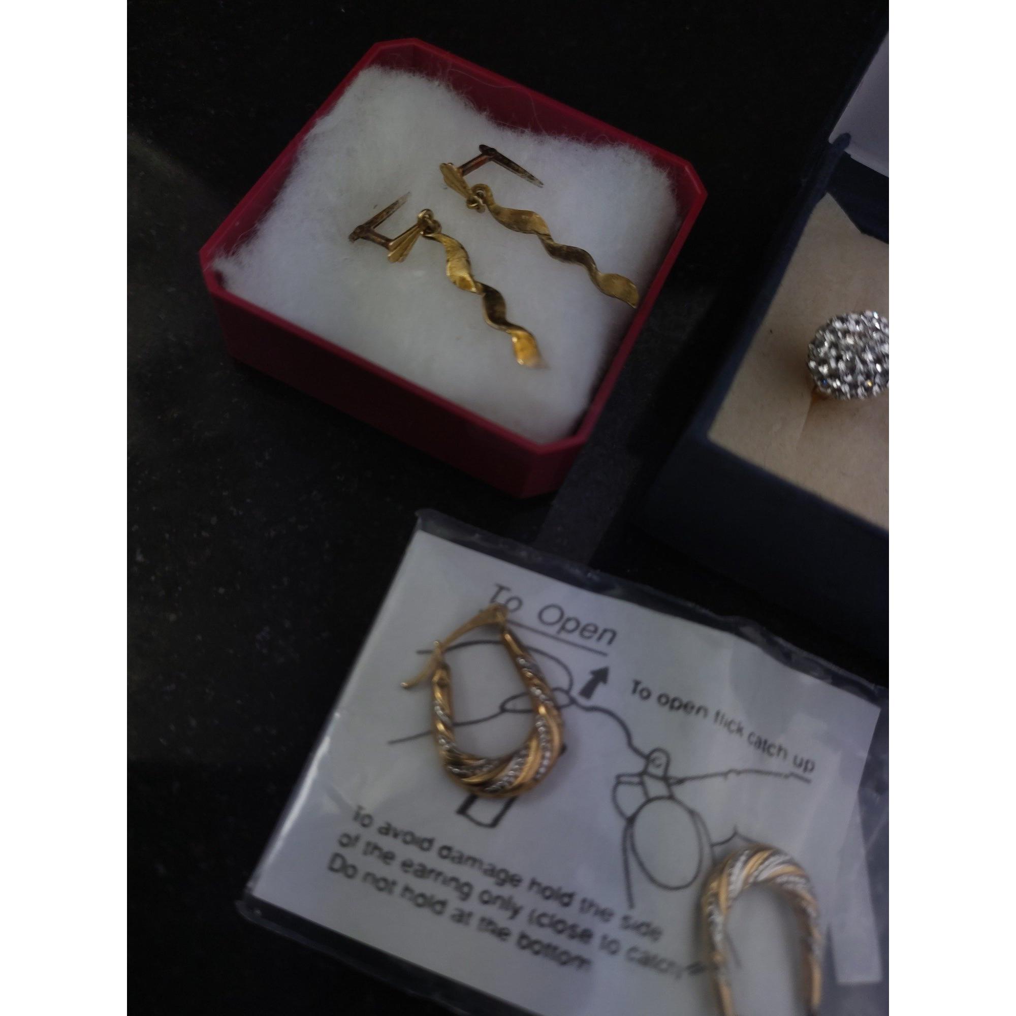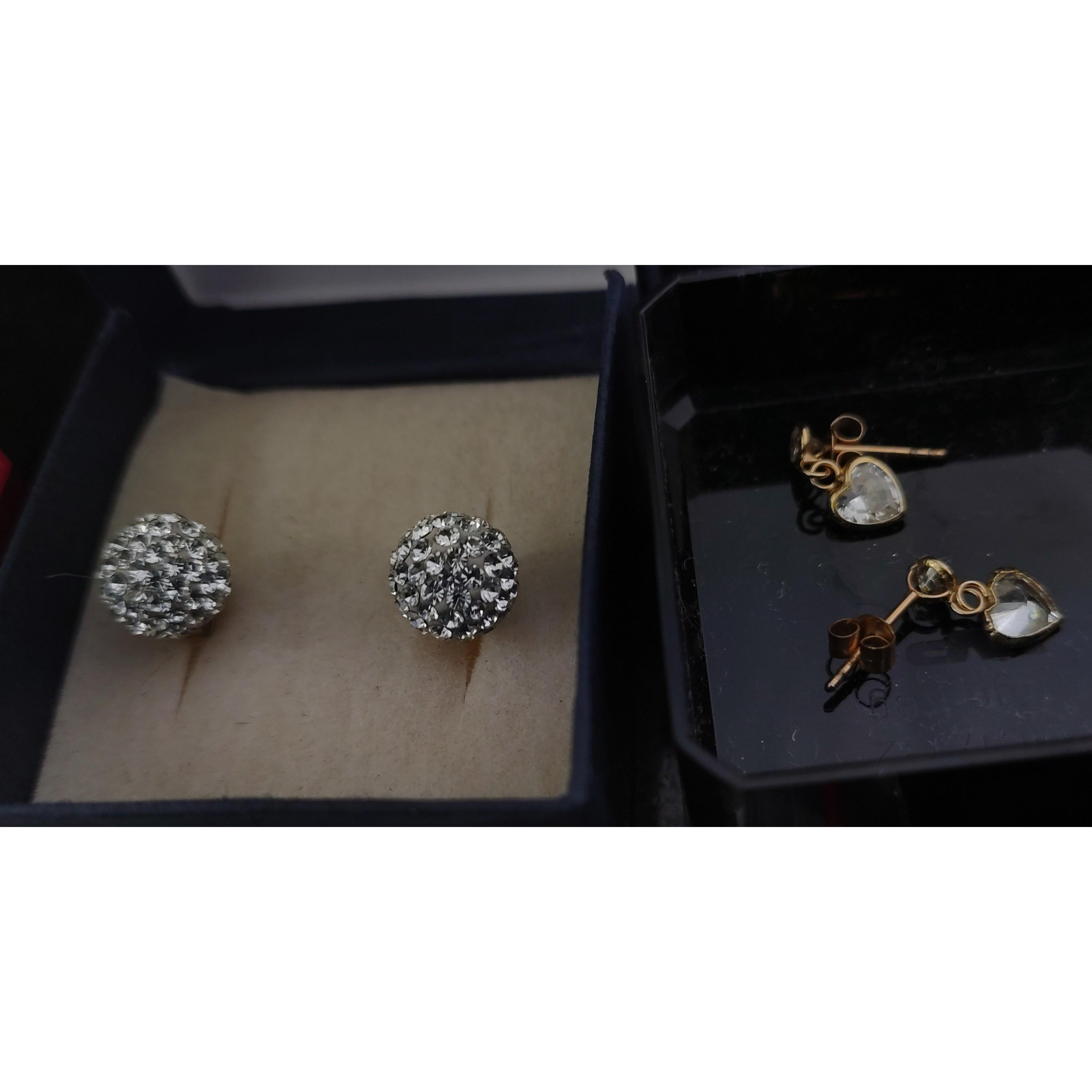 9ct / 375 stamped earrings comprising glitterball style, hoops and hearts. Interesting little lot. Weight 2.8g approx.