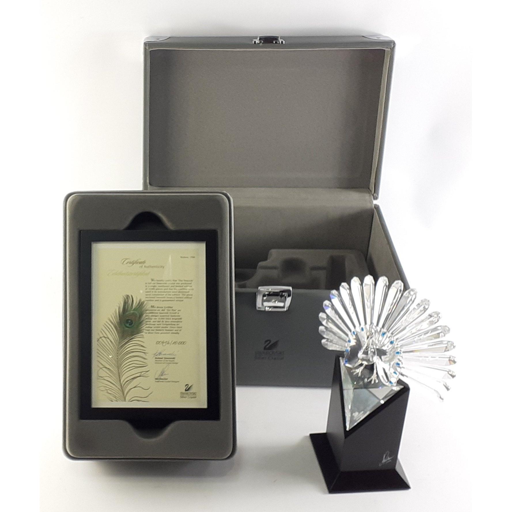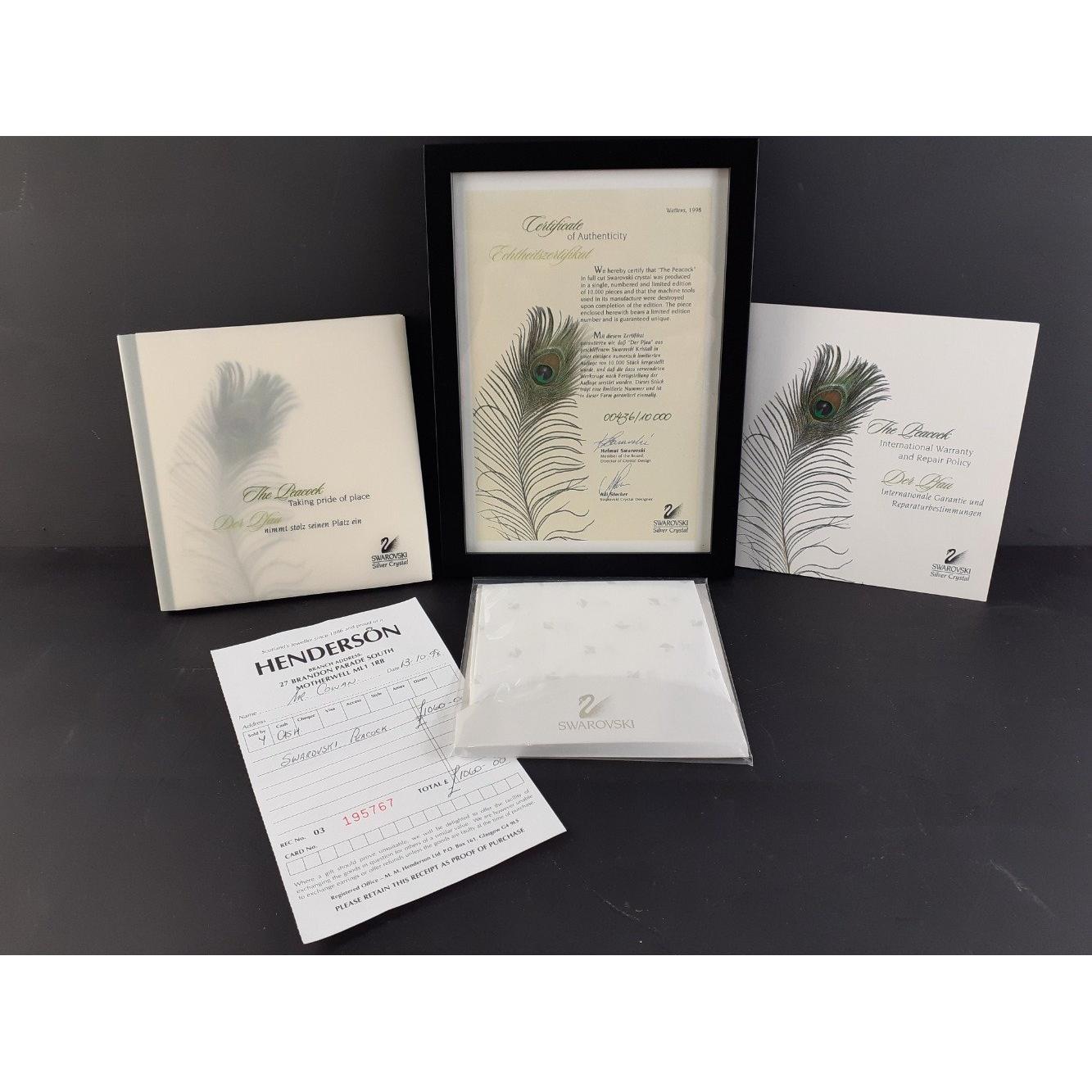 SWAROVSKI - THE PEACOCK In original presentation box with certificate and paperwork including 1998 receipt for £1060. A truly stunning piece. Ltd. Ed number 436/10000.