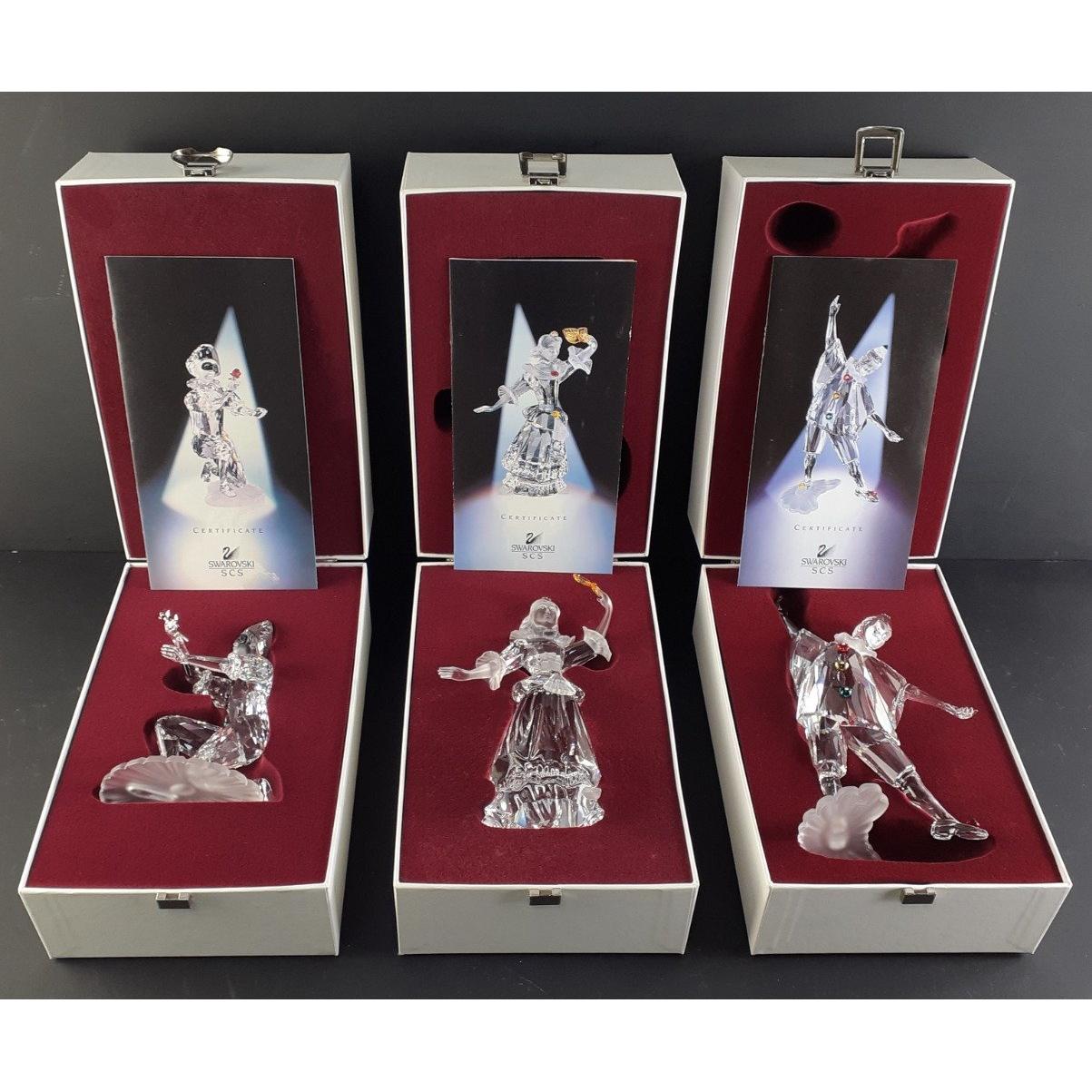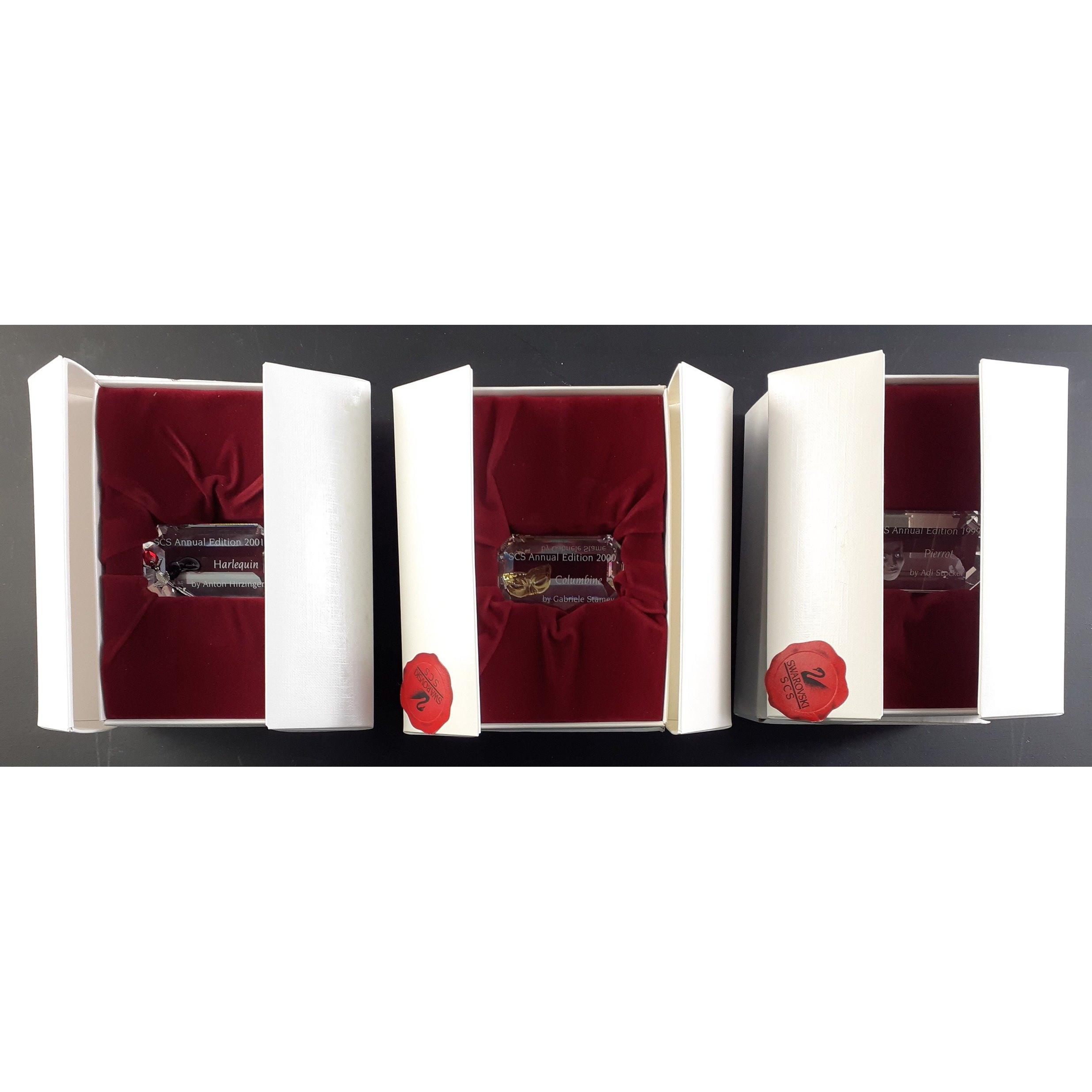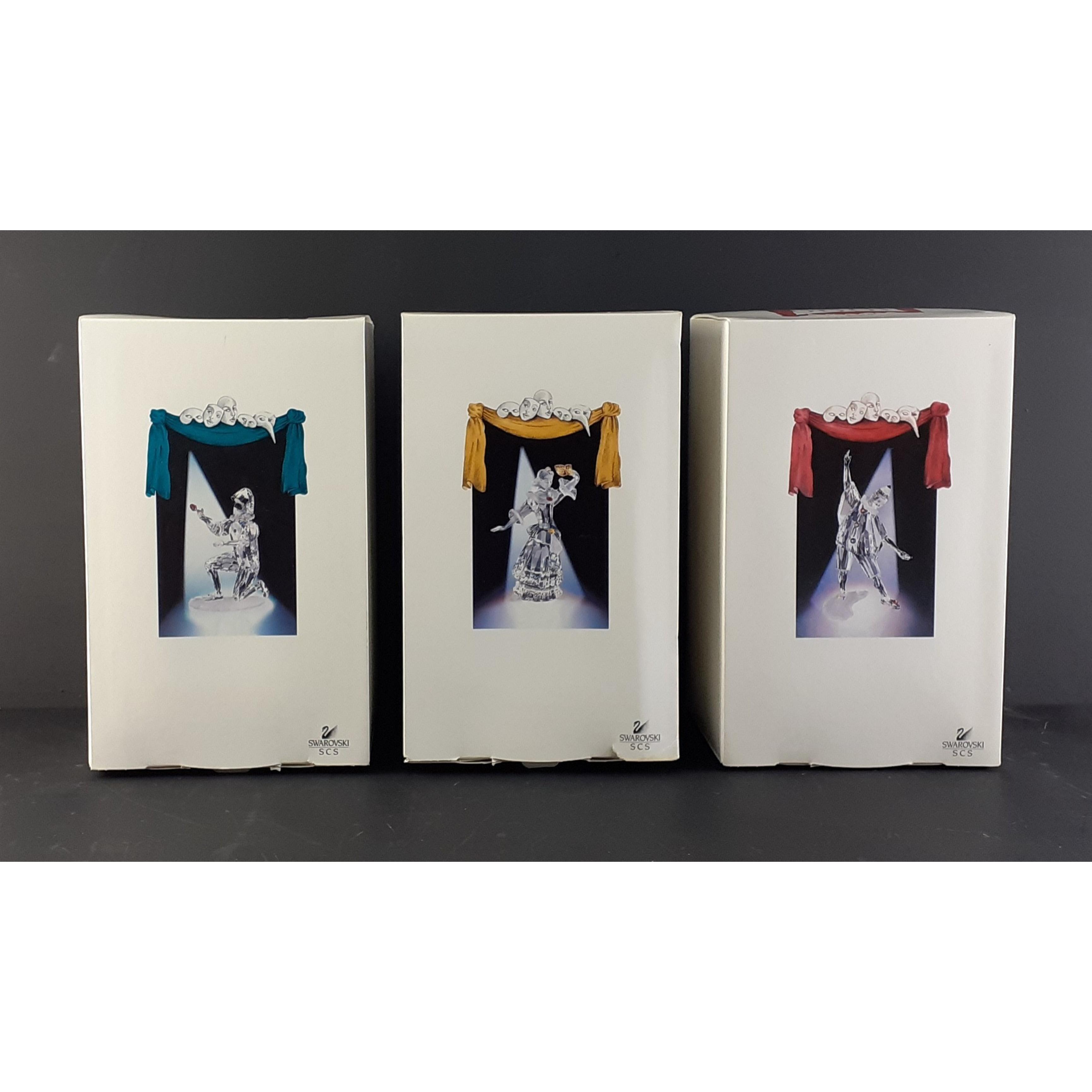 SWAROVSKI - MASQUERADE range from 1999 PIERROT, 2000 COLUMBINE, 2001 HARLEQUIN. All boxed with paperwork. Approx 3 pieces