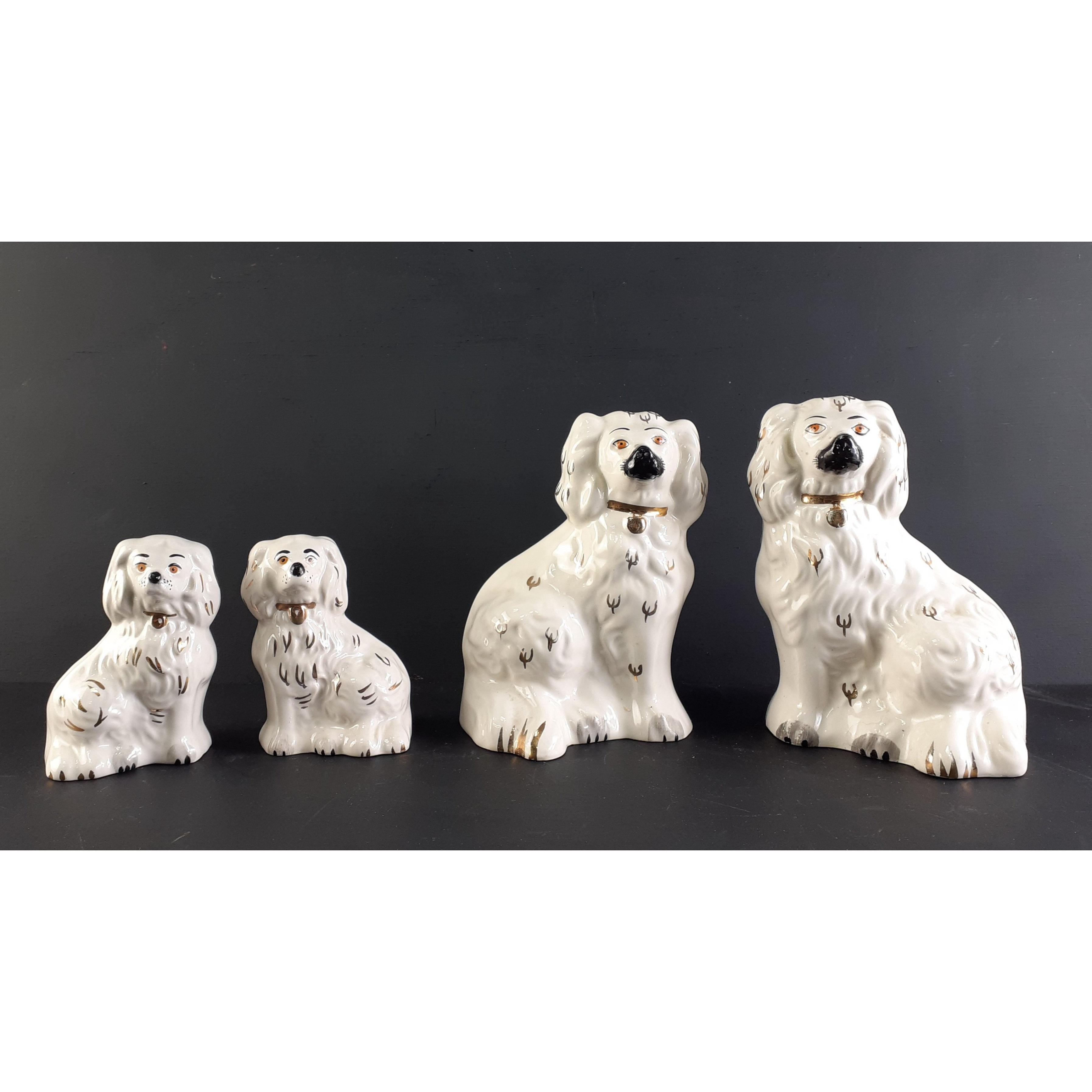 Two pair of BESWICK Staffordshire mantelpiece dogs in good condition. Larger pair 14cm the smaller 9cm approx. Approx 4 pieces