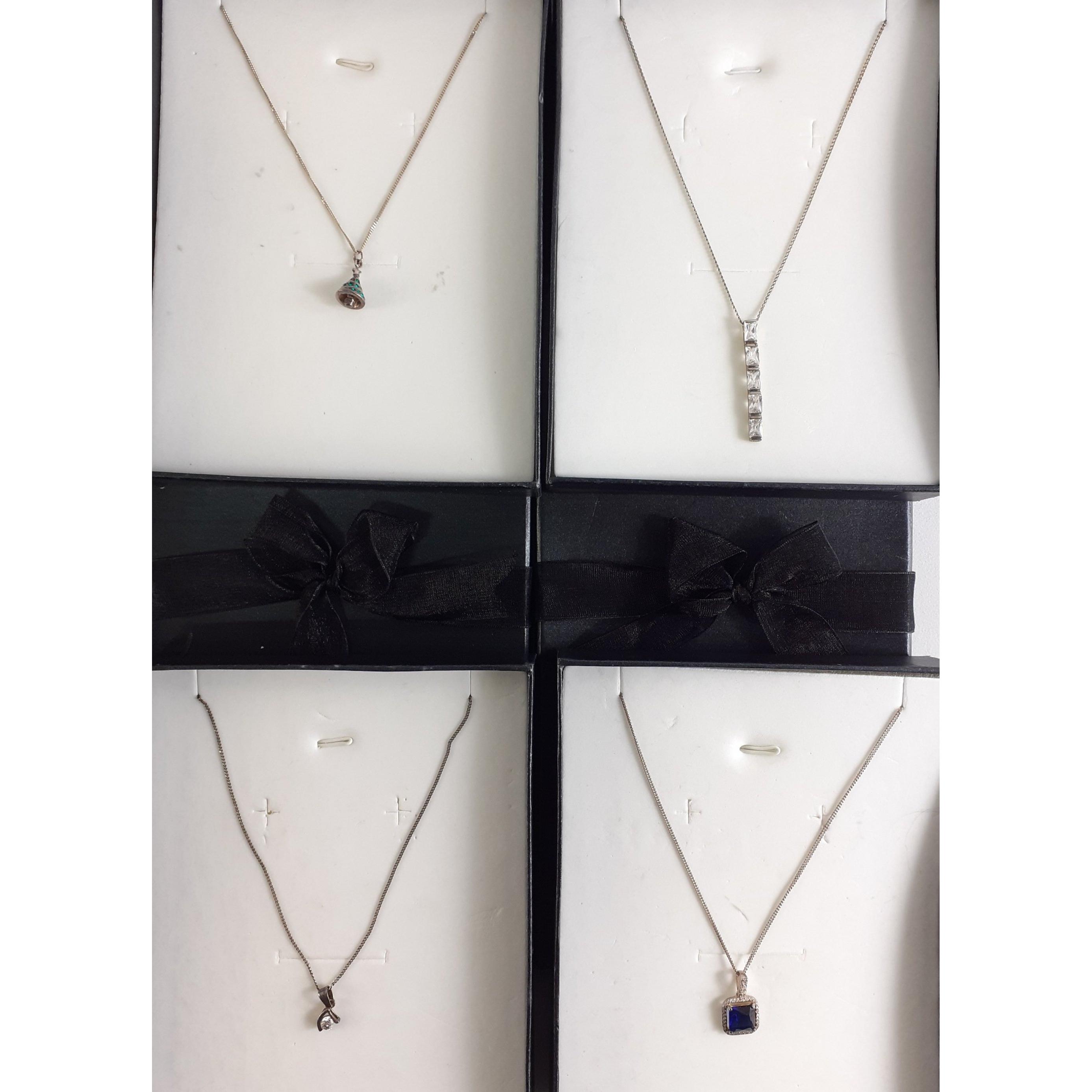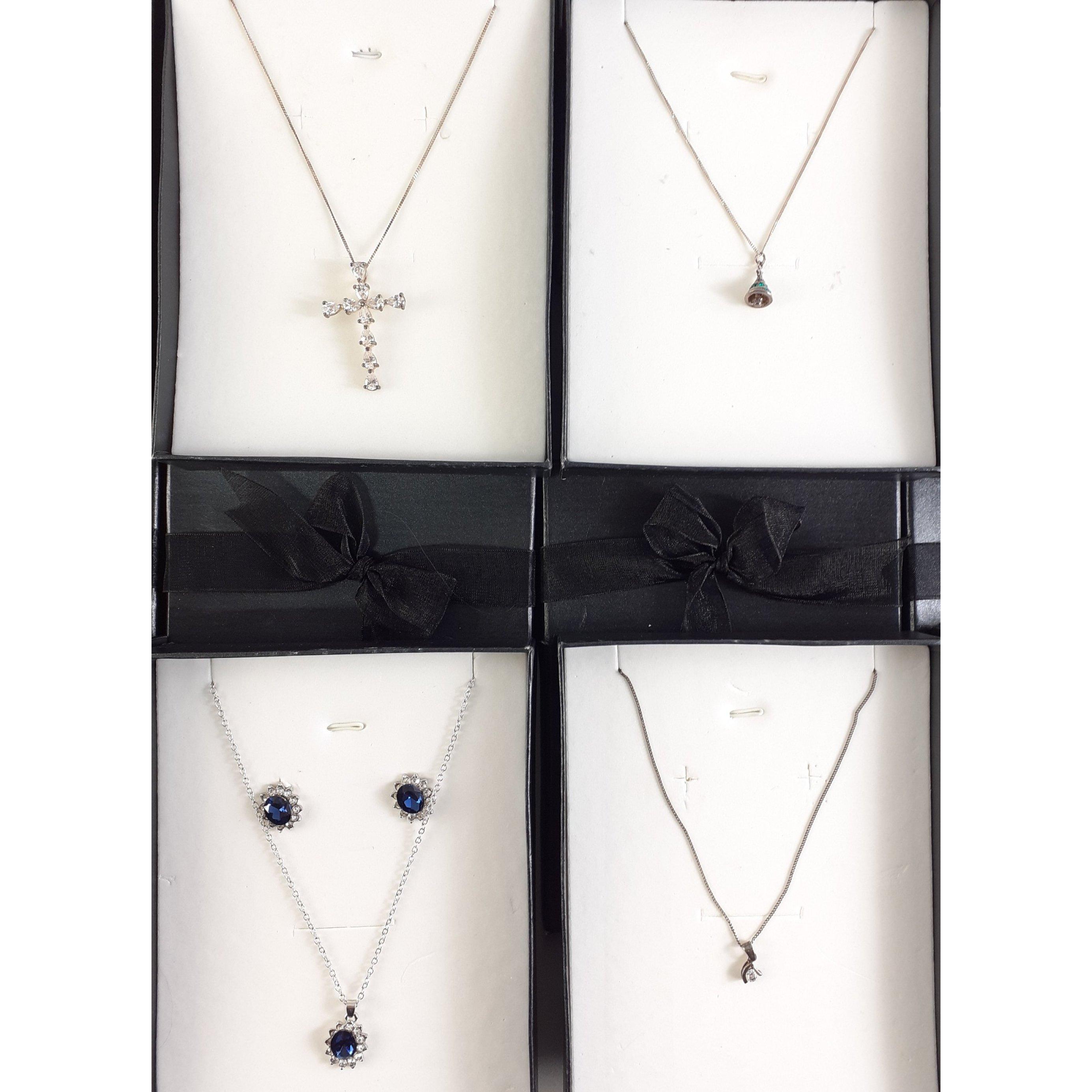 A quantity of boxed silver necklaces and pendants nicely presented.