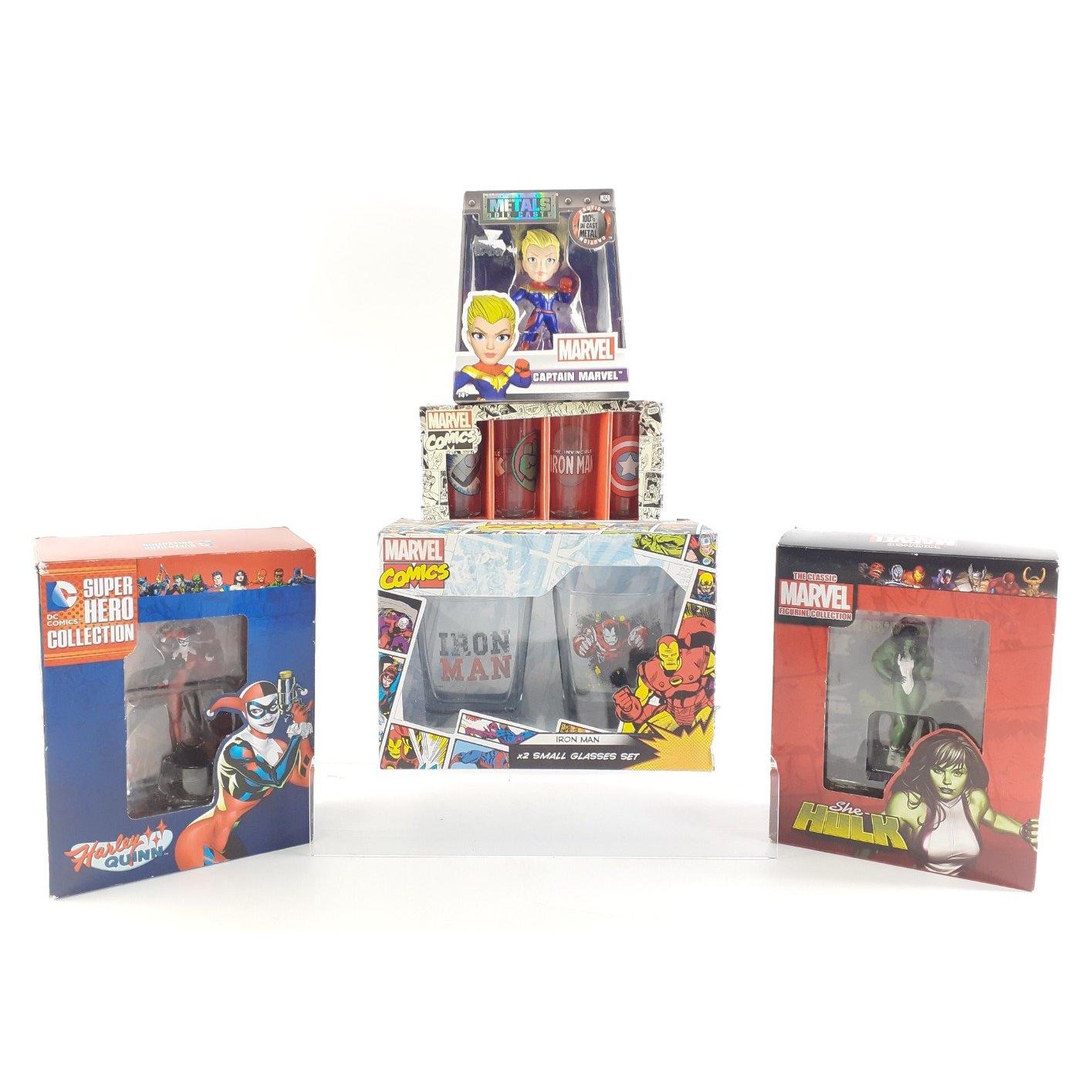 MARVEL and DC box figures, HULK, IRON MAN Glasses, The Flash, Justice League and much else.