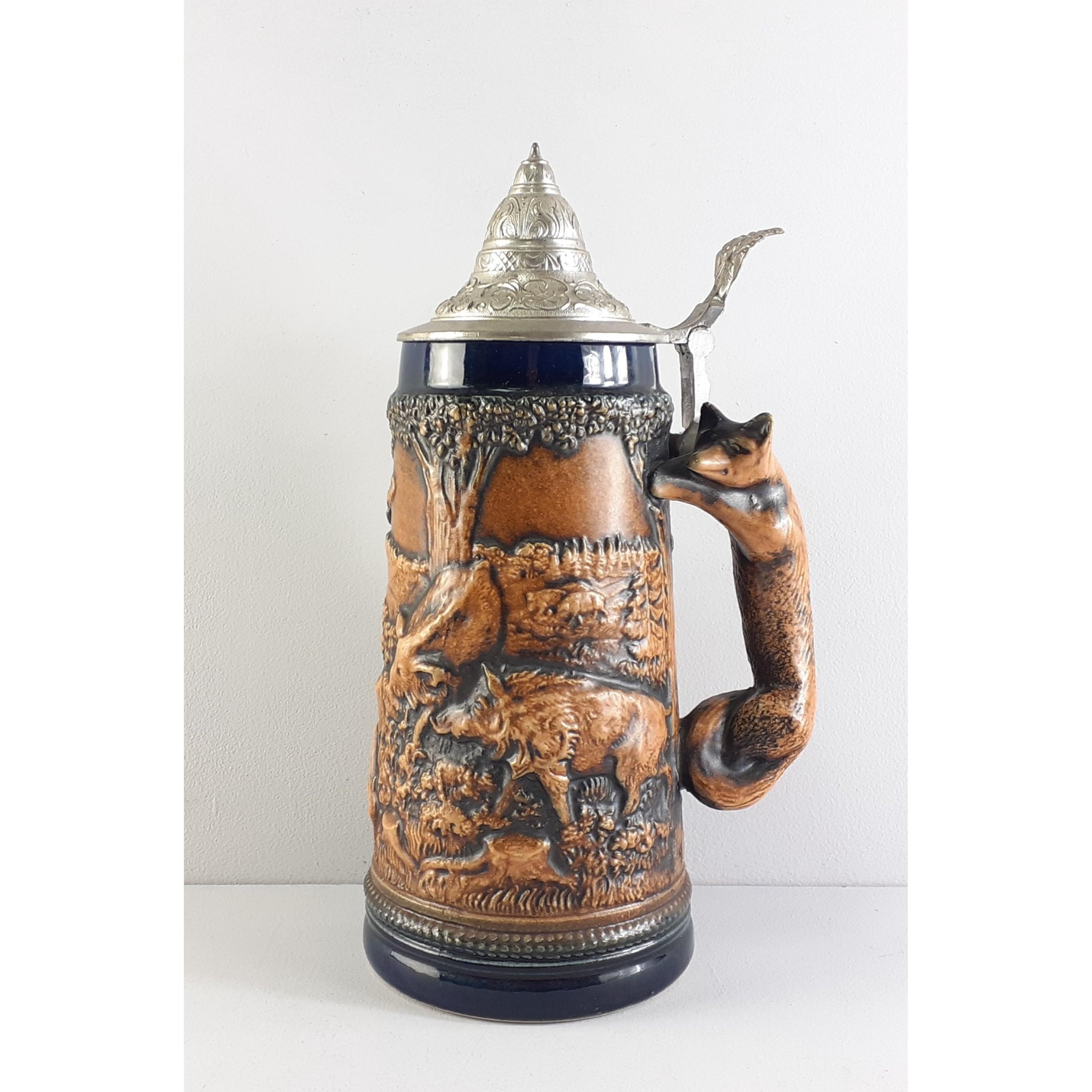 A wonderful large lidded ceramic Beer Stein by GERTZ West Germany. Stands 26cm tall and in lovely condition.