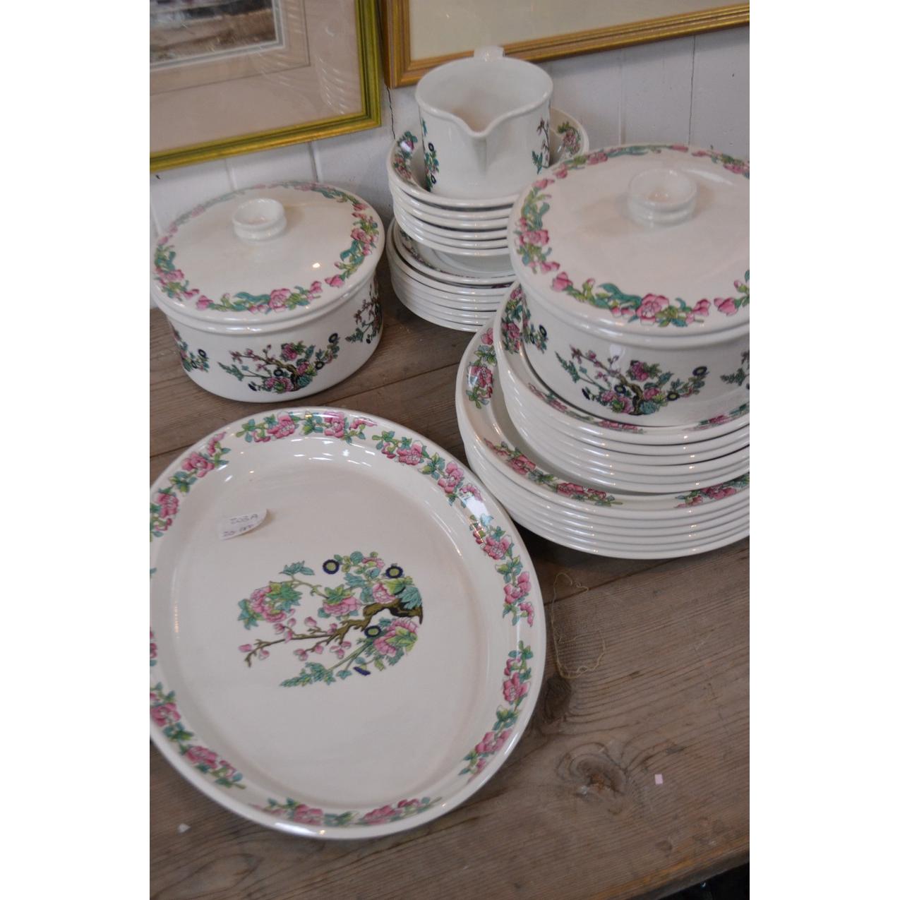 Port Merion Indian Tree dinner service to include 1 platter, 2 casserole dishes, 6 bowls, 6 7" side plates, 6 8.5" side plates and 6 10" dinner plates