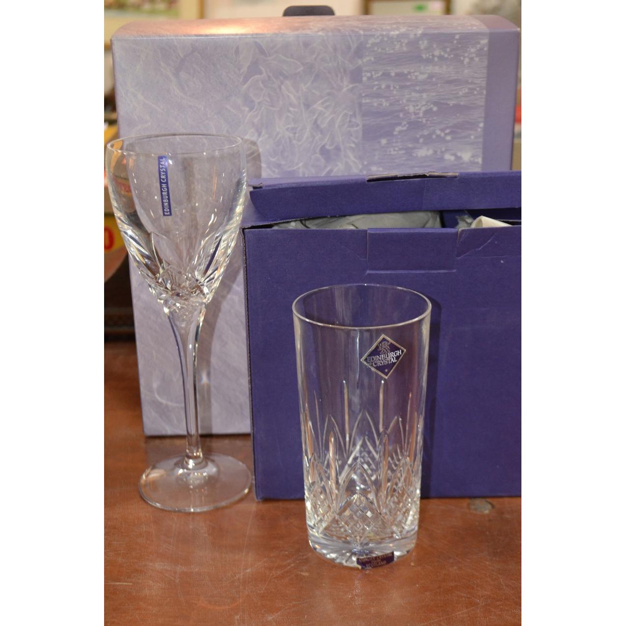 Pair of hi ball Edinburgh Crystal glasses and pair of boxed wine glassesH: 22.5cm approx