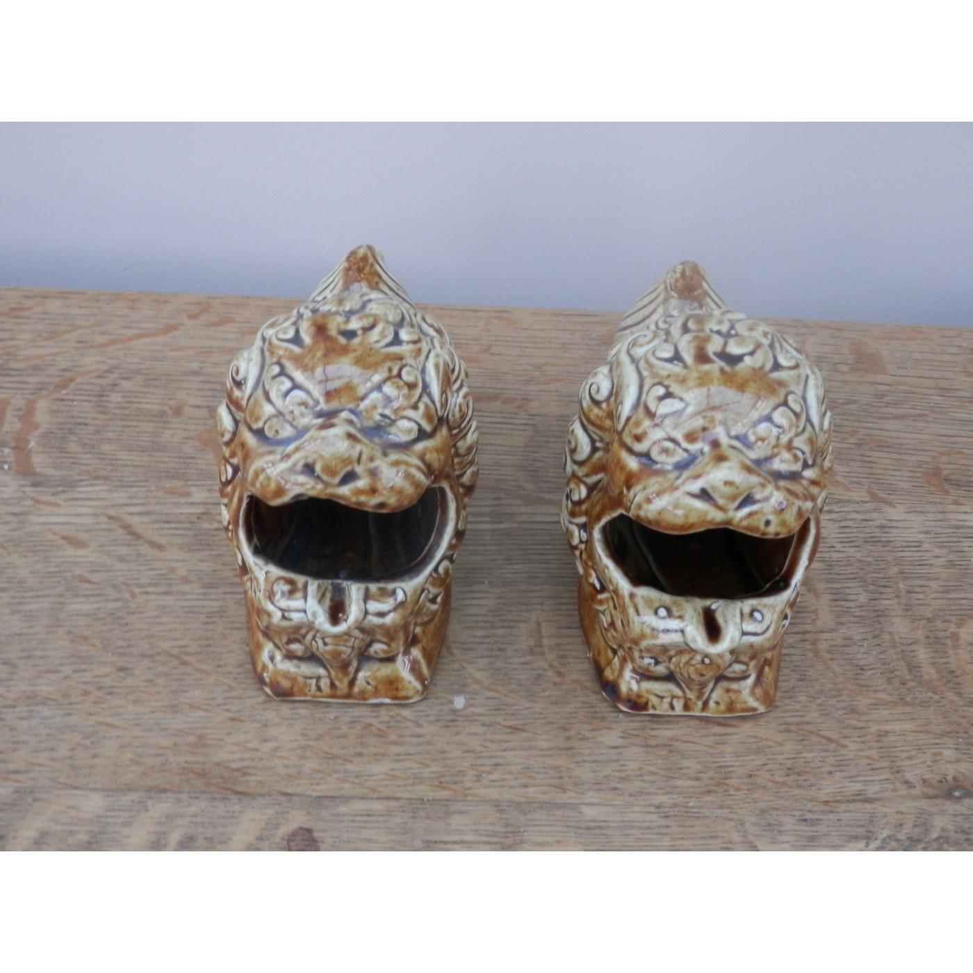 A pair of porcelain chinese Foo dogs. They are 13 cm long and 10 cm tall.