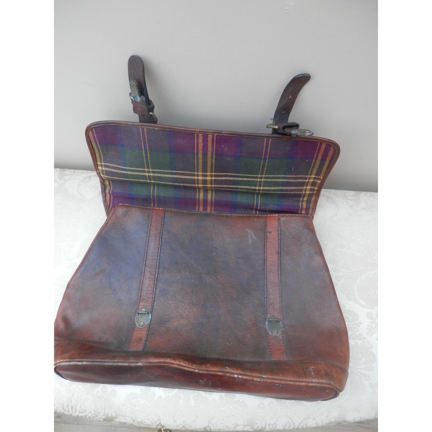 A retro "Hidesign" tartan lined leather brief case. It measures 45 x 30 cm approx. It would easily take a lap top and has various zipped pockets.