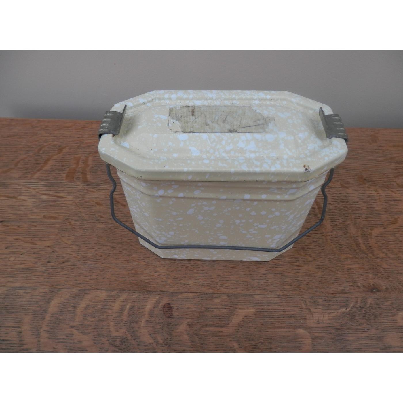 Unusual small French metal lunch box 13 cm tall.