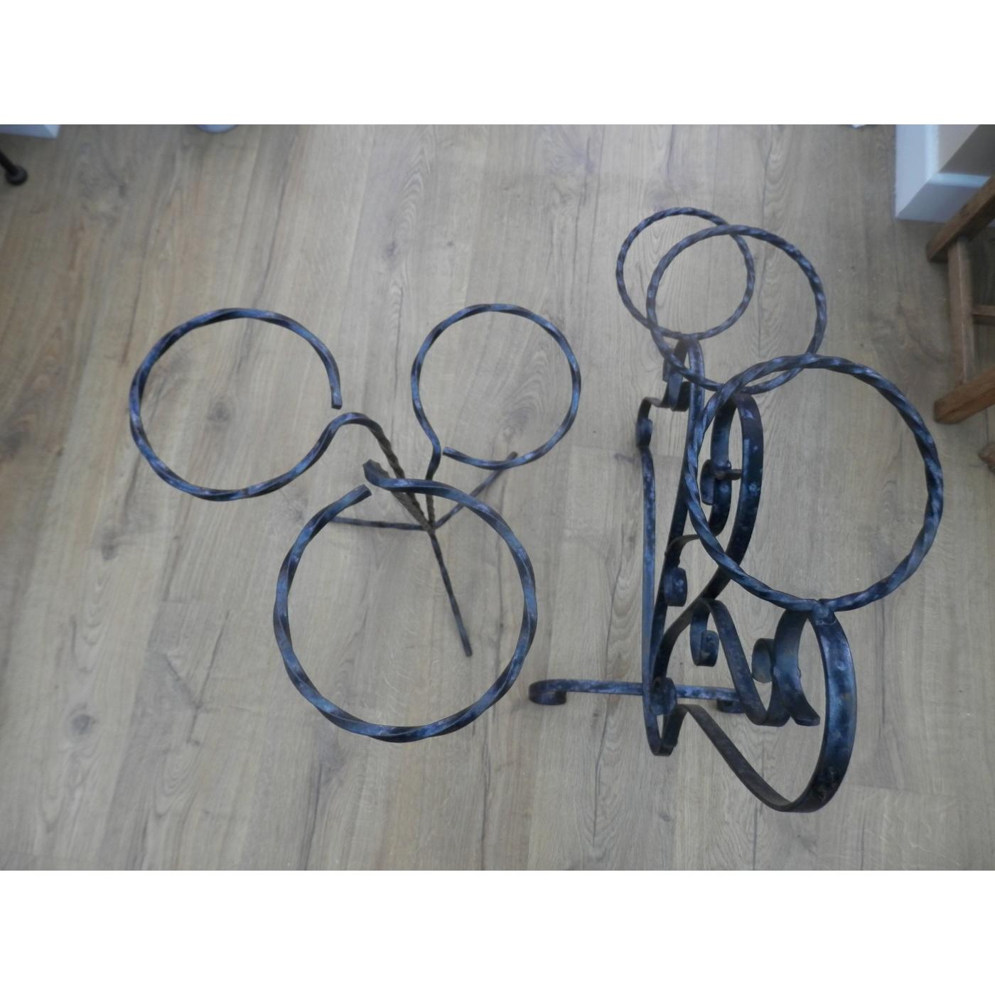 2 French wrought iron 3 pot plant stands approx 60cm tall