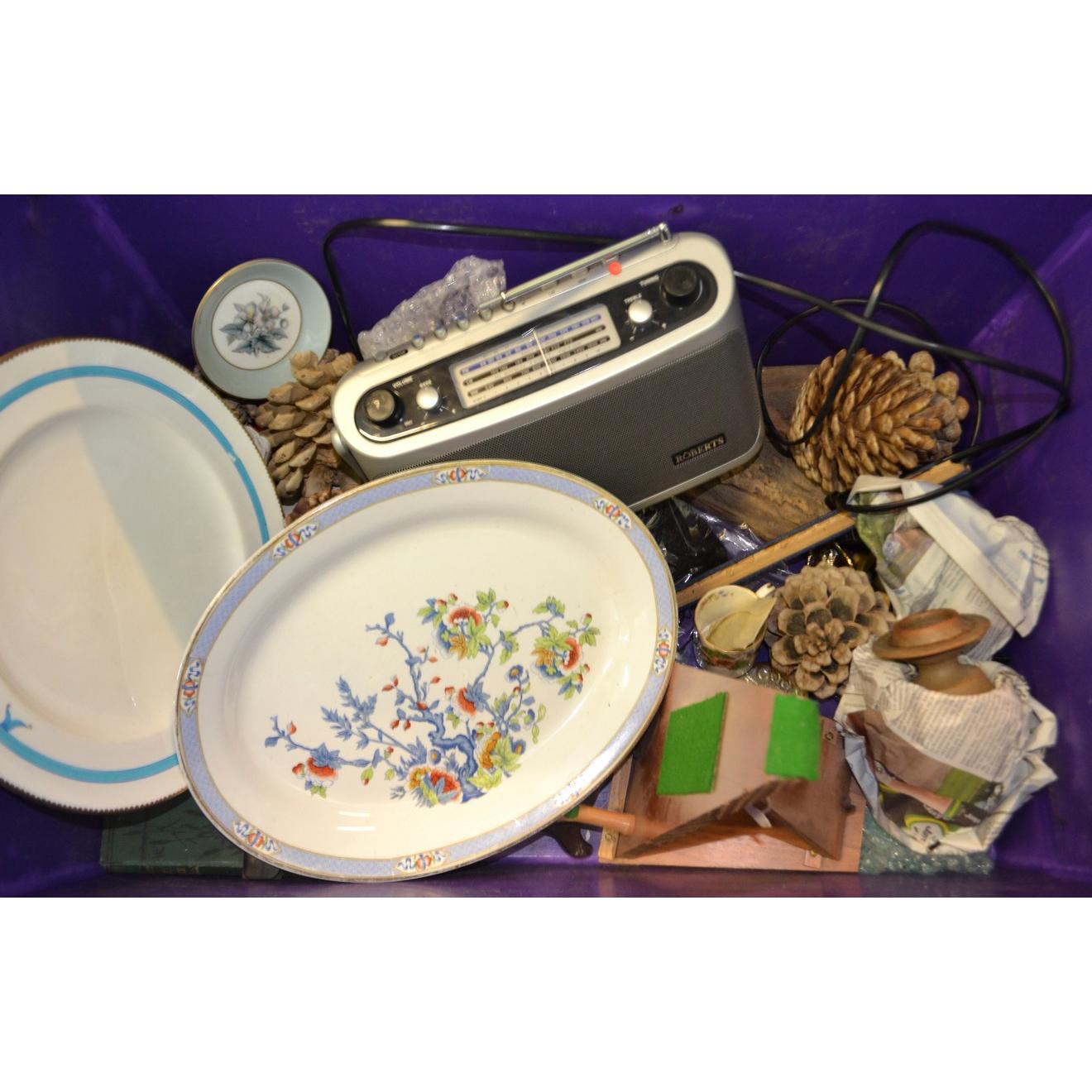 Mixed box to include Roberts radio, Minton plate (vintage)