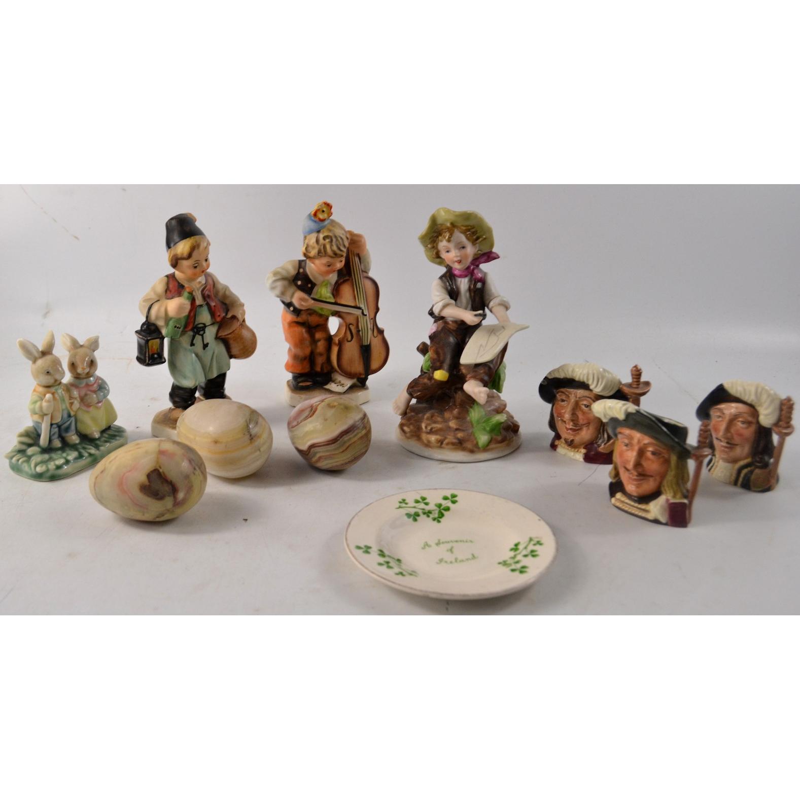 A collection of ceramics to include Bavarian ornaments (15cm H), onyx eggs (3) etc