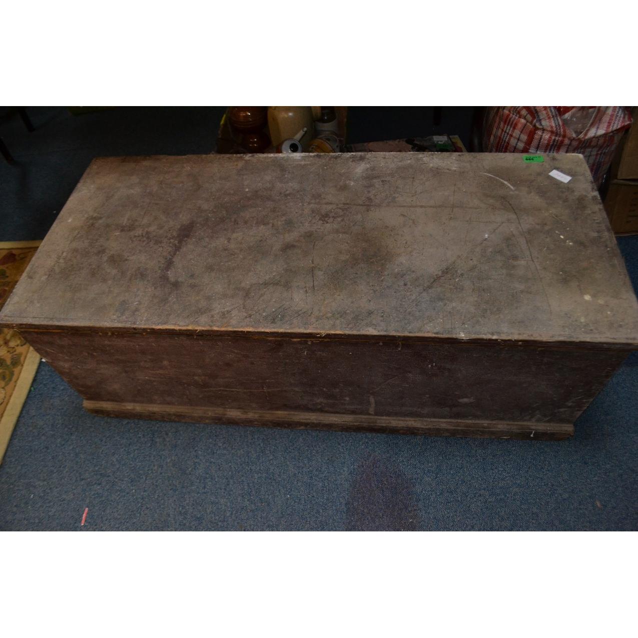 FANTASTIC PATINA Old maroon painted wooden lidded chest, possibly late 19th century L: 100cm approx W: 50cm approx