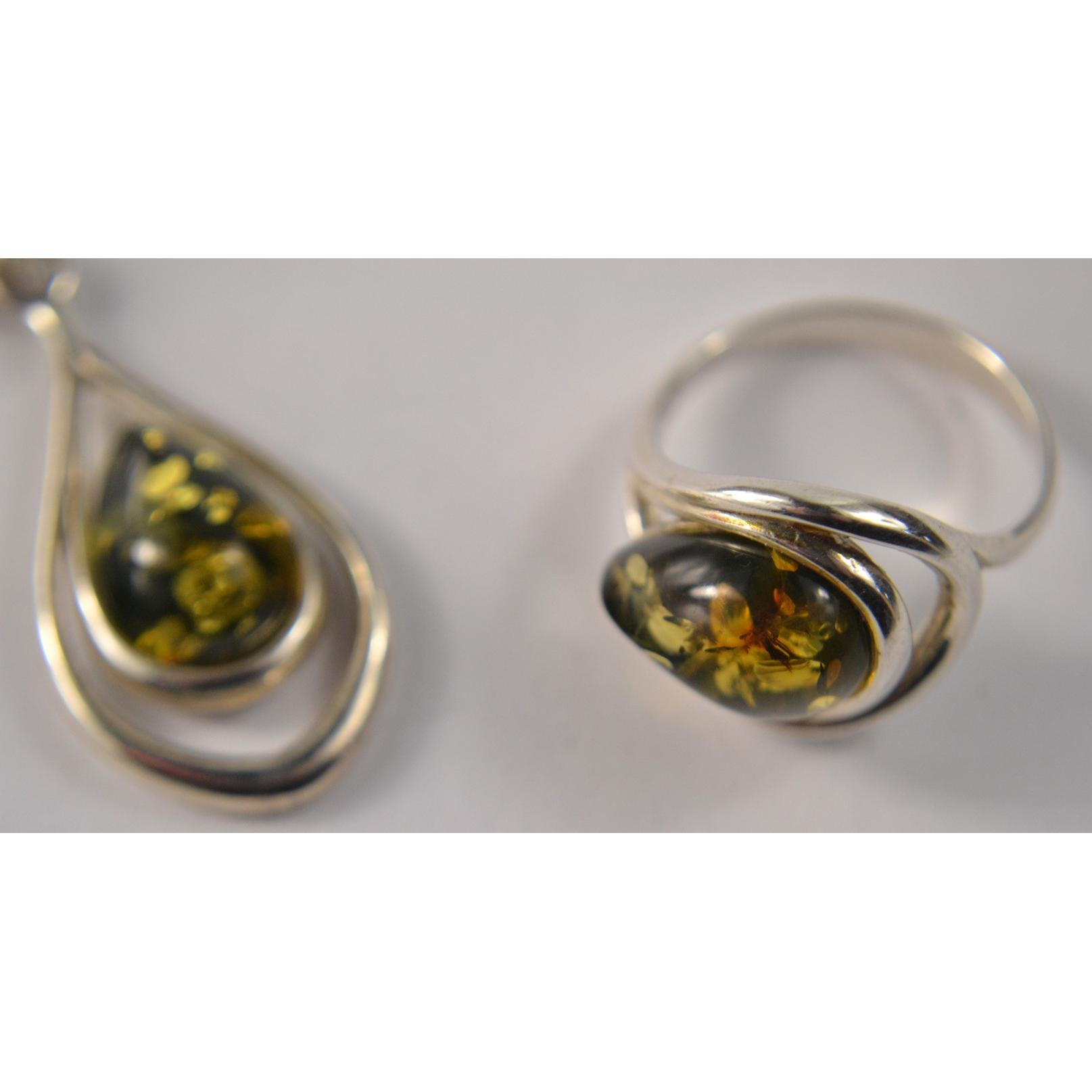 Silver stamped 925 Green amber ring, size N/O and a pendantGross weight approx 7.42g