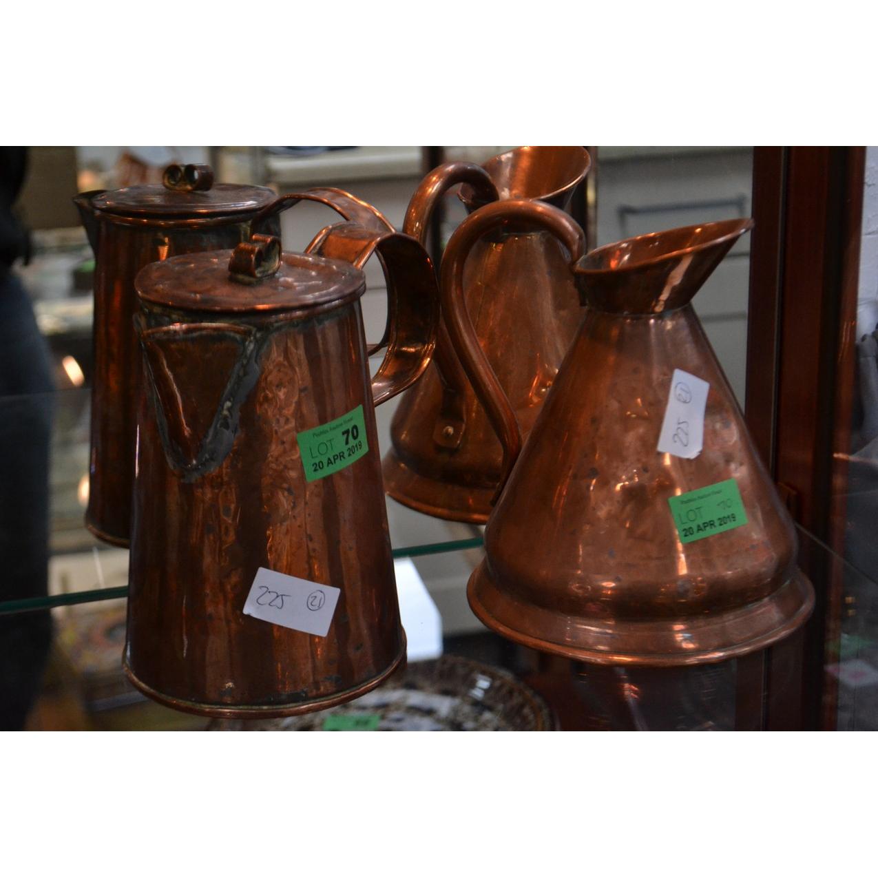 Vintage copperware to include a very old coffee pot H 17cm and a copper more recent water jug H 19cm