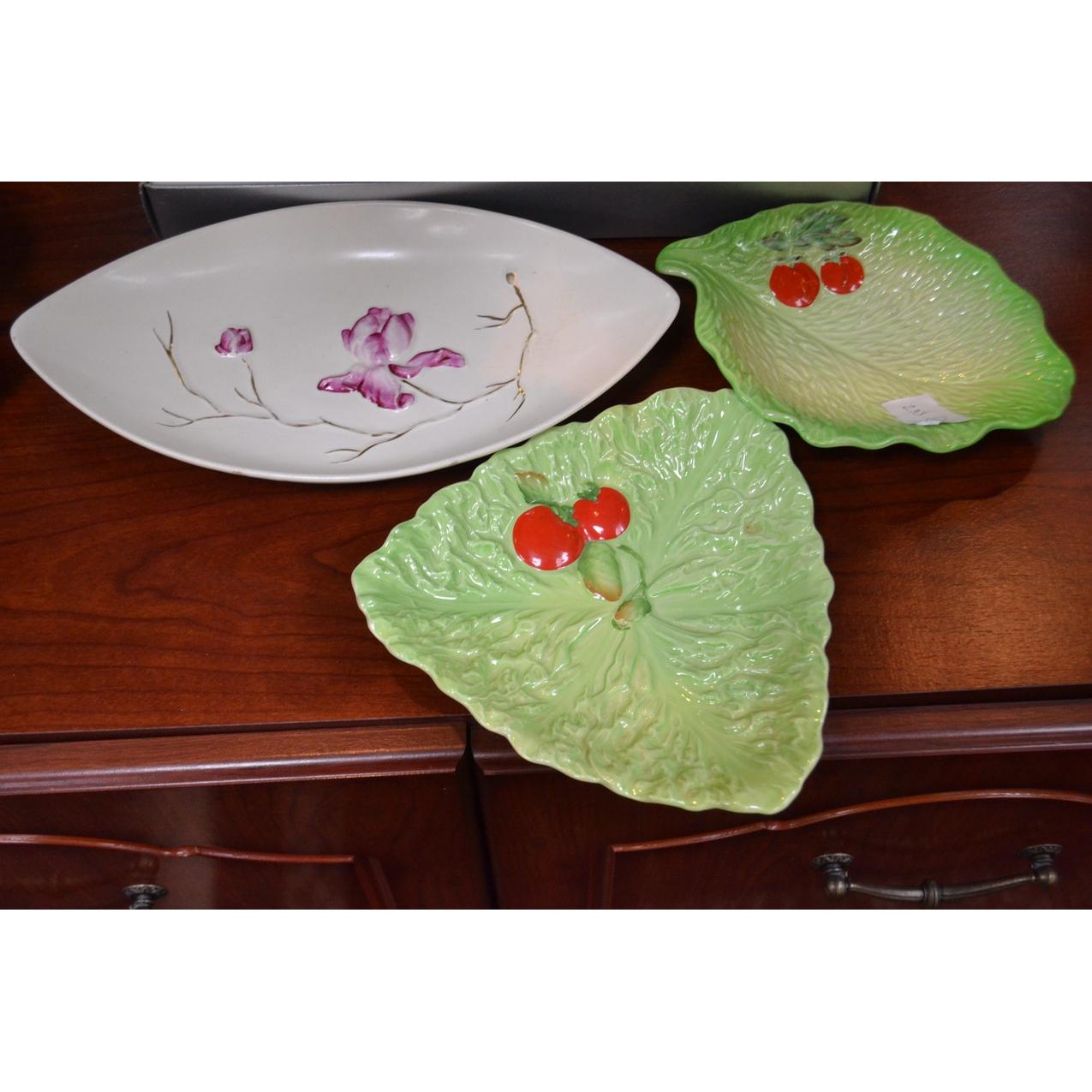 CARLETON WARE hand painted cabbage leaf style plate L 17cm and a BEWSWICK WARE similar style plate L 18cm and another CARLETON WARE small oval plate with an orchid style design, L 28cm