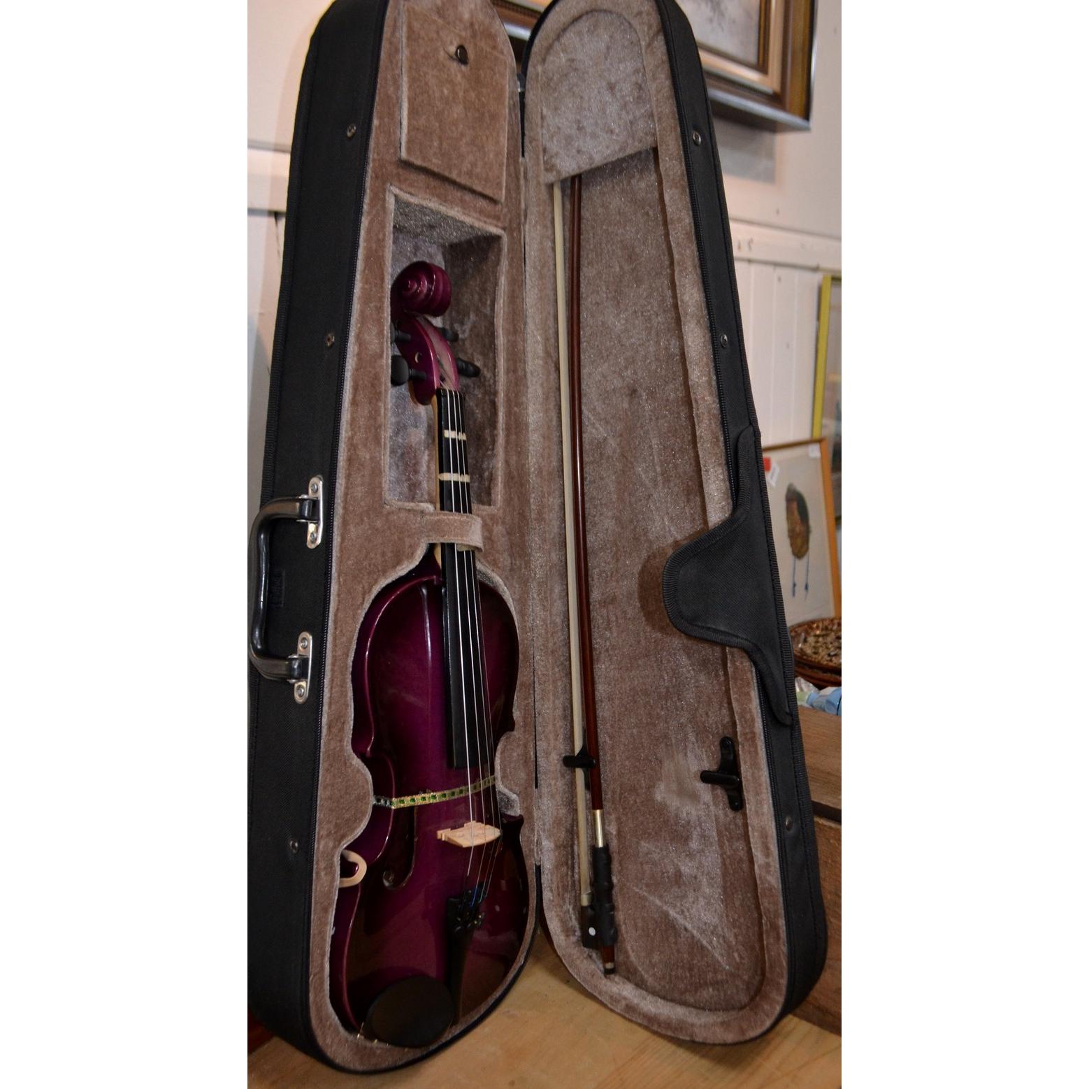 Childs nice quality violin in plum finish, with bow and case, came from STRINGERS