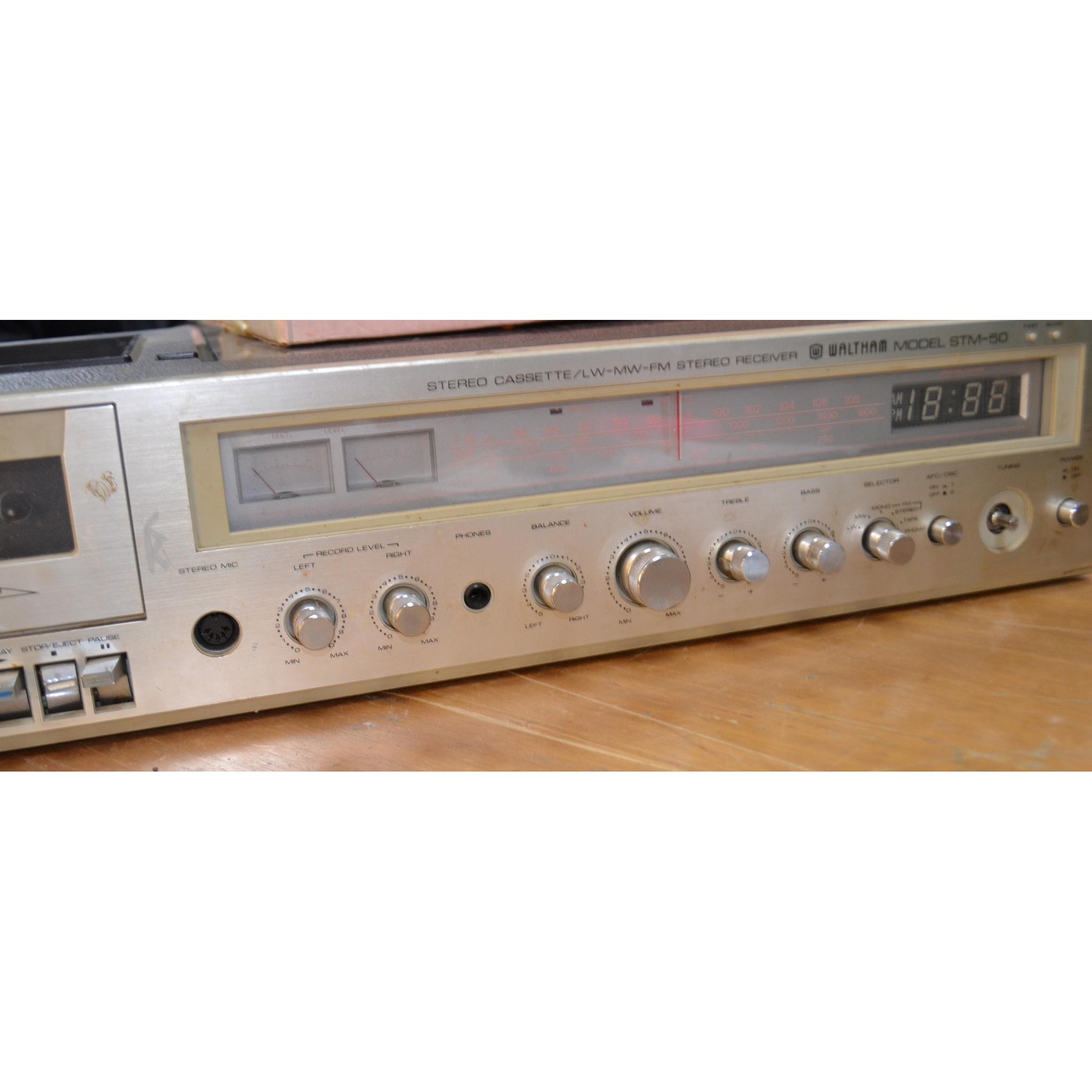WALTHAM MODEL STM-50 tape deck and radio and a box of mixed vintage 8 track tapes