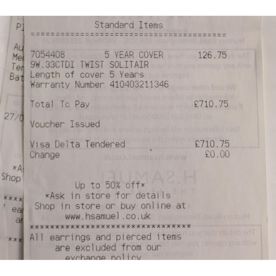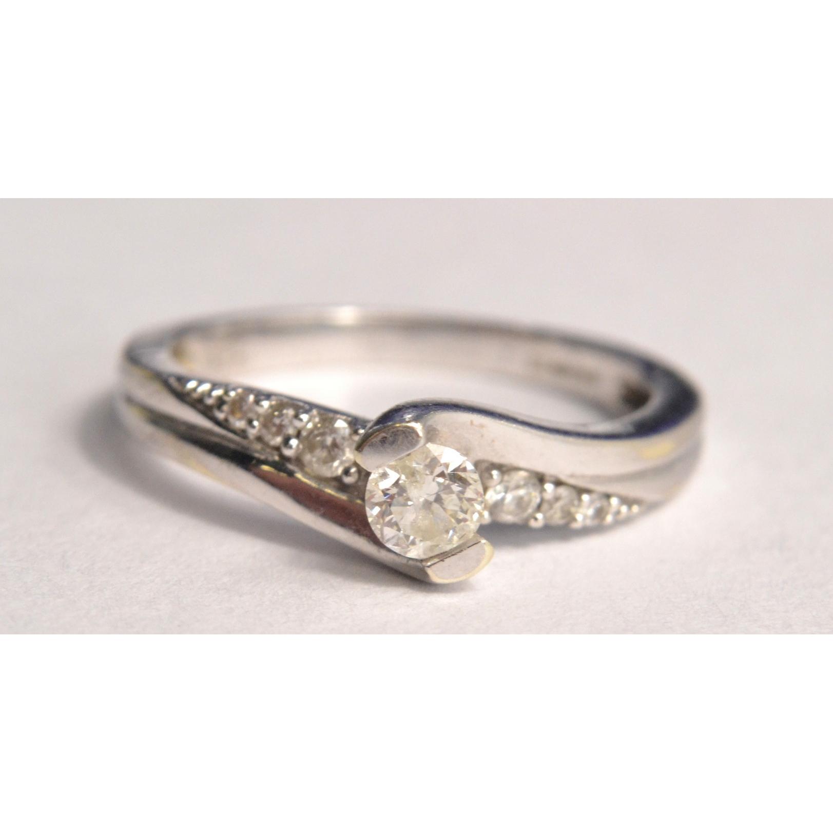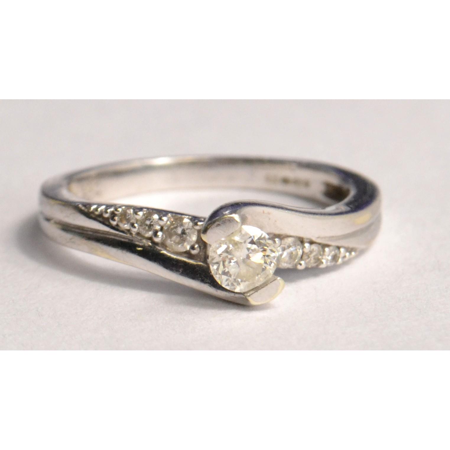 White gold twist solitaire engagement ring size M, gross weight 3.06g, with certificate and original receipt