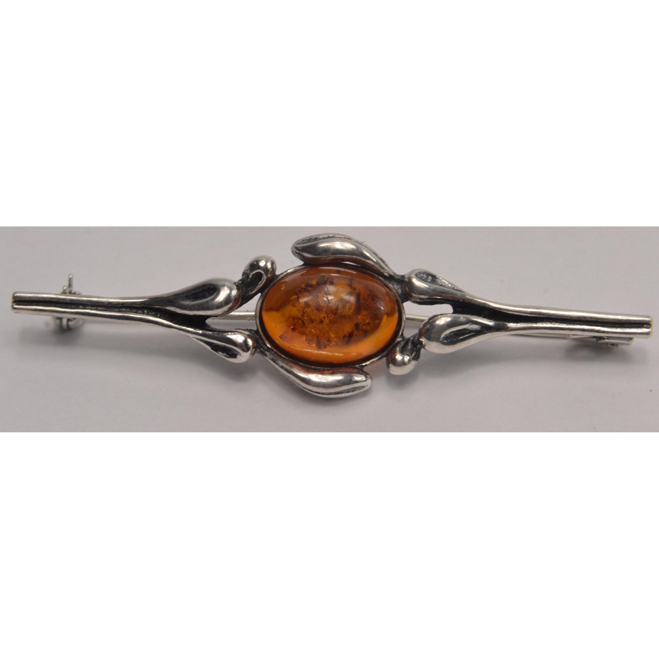 Silver brooch set with amber cabuchon