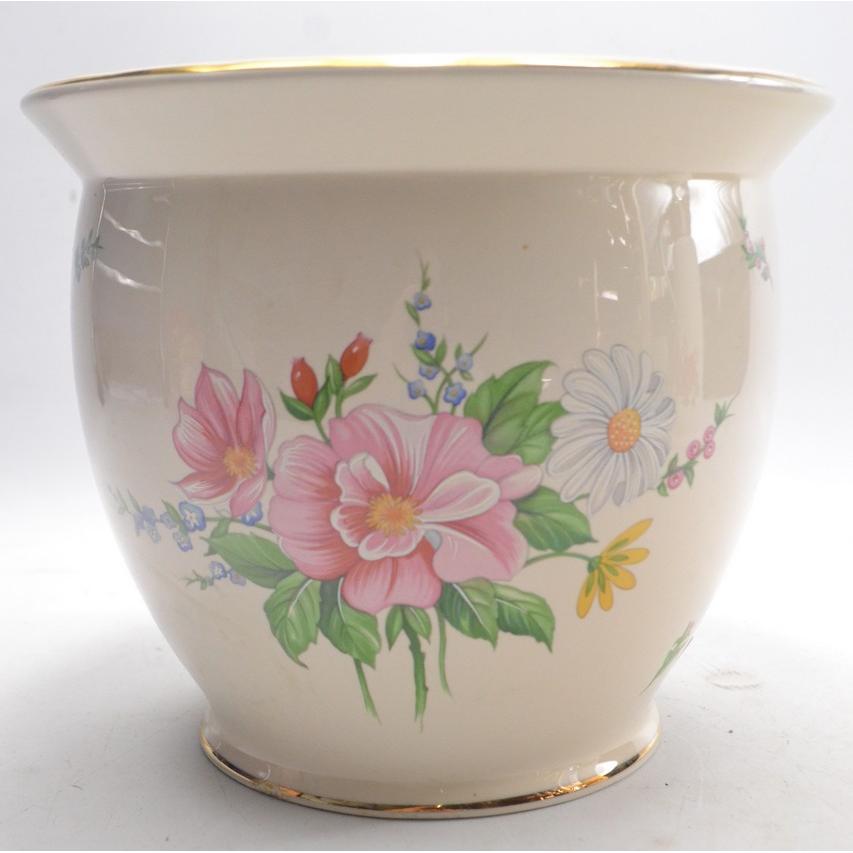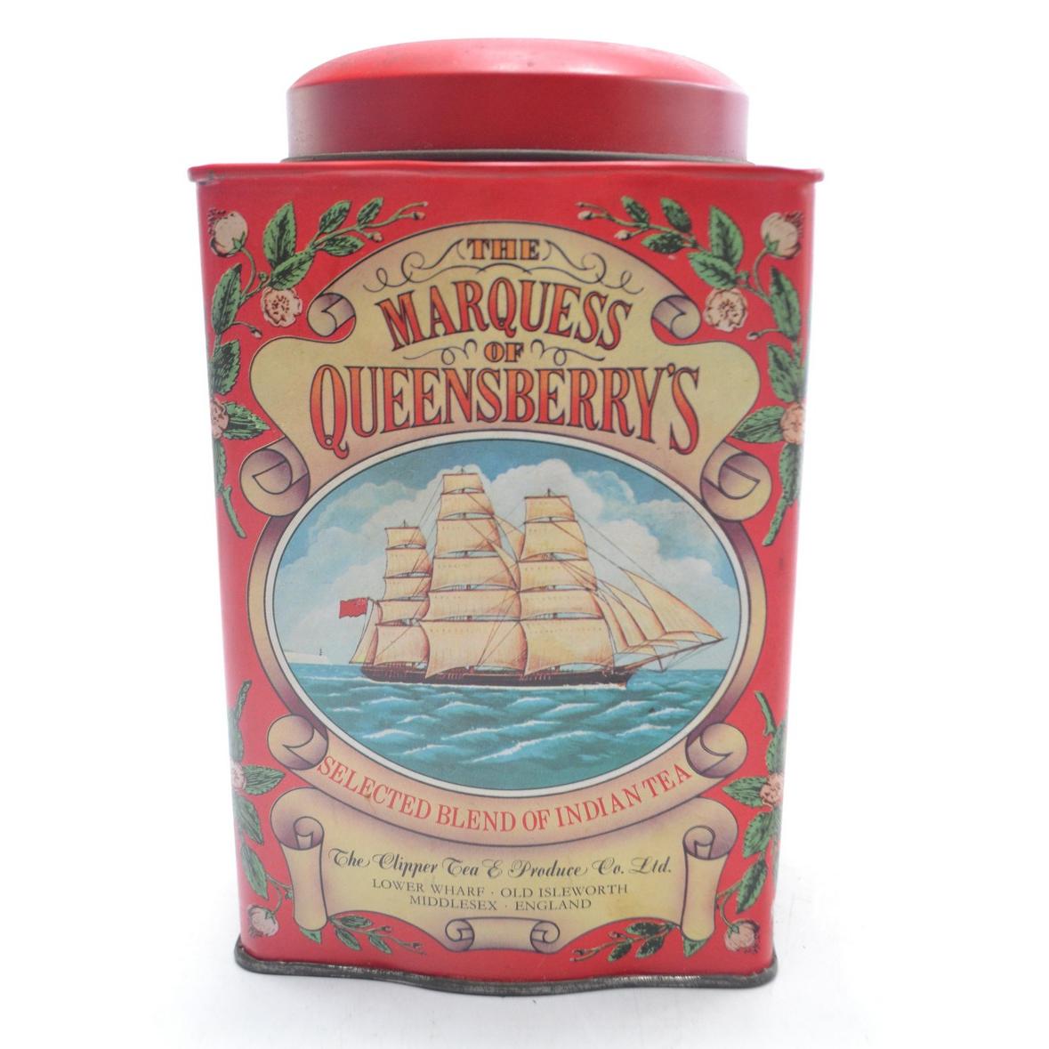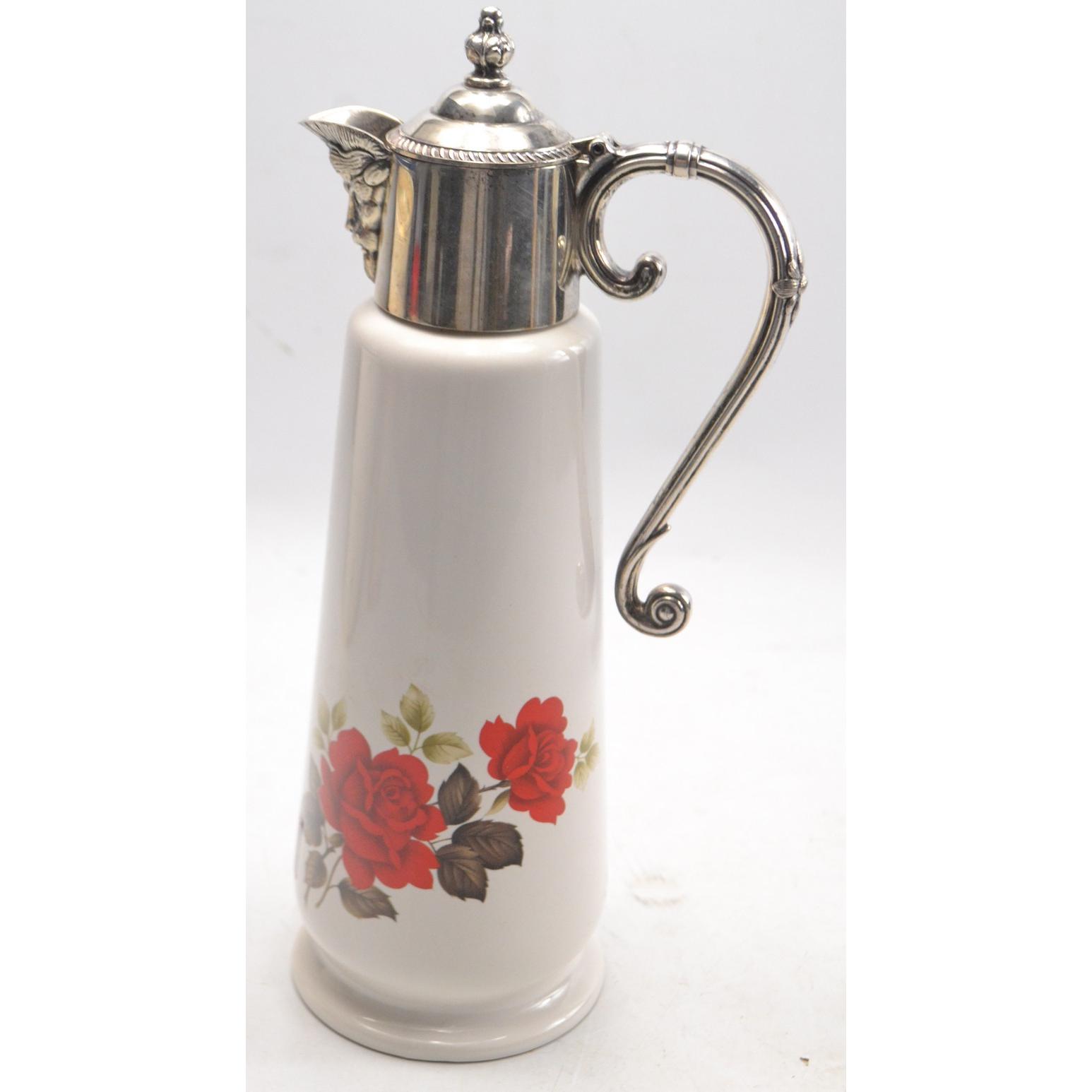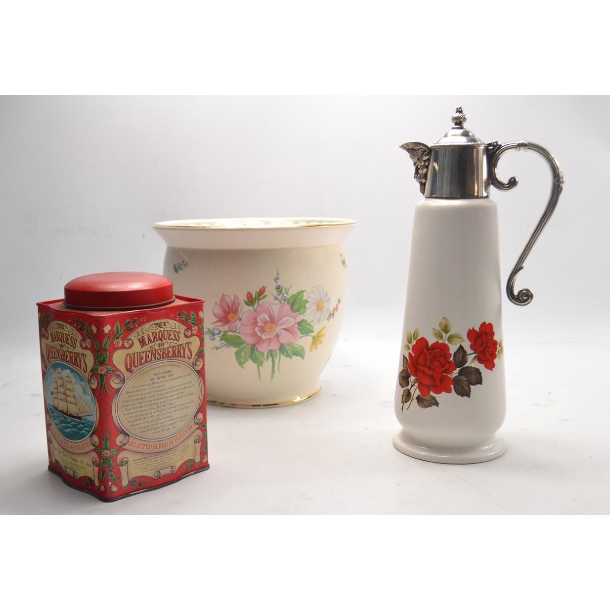Marquess of Queensferry vintage tea tin (18cm) with porcelain silver plated jug (30cm) and Wade plant pot with floral design (20cm) (3)