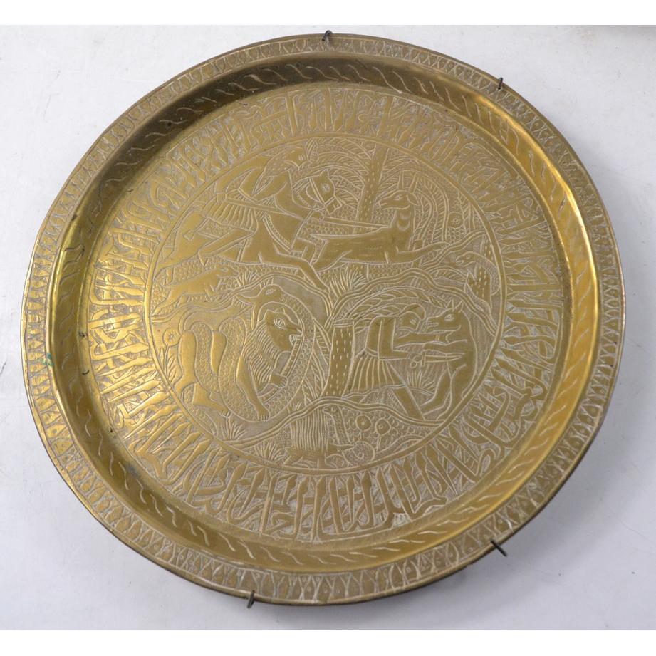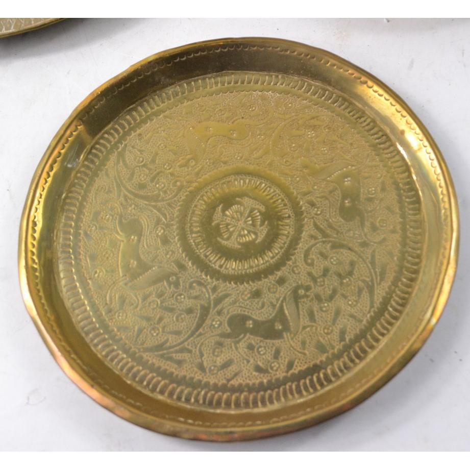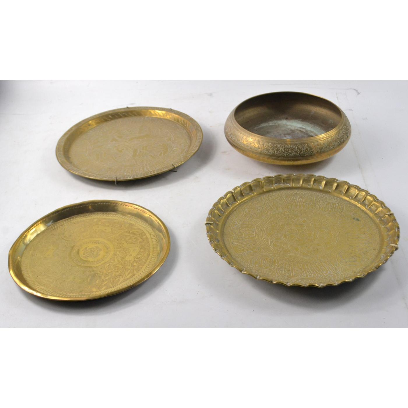 Collection of brassware to include 3 brass plates and brass bowl (W:21cm approx)