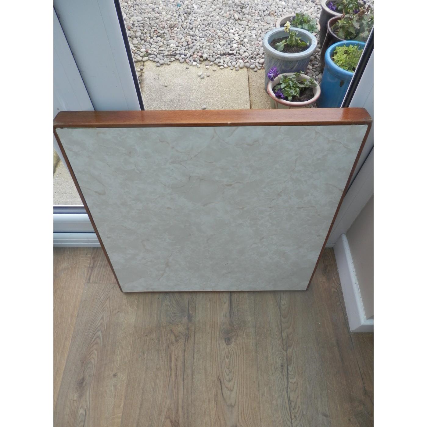 Very sturdy folding table with formica top so can be used outdoors. 60 cm square.