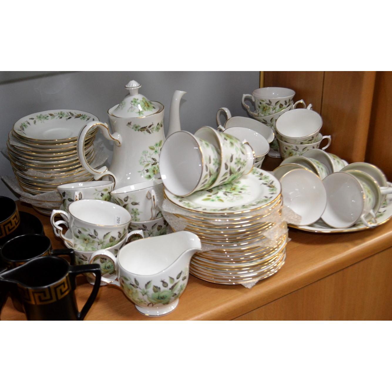 Colclough bone china large teaset in green flower design