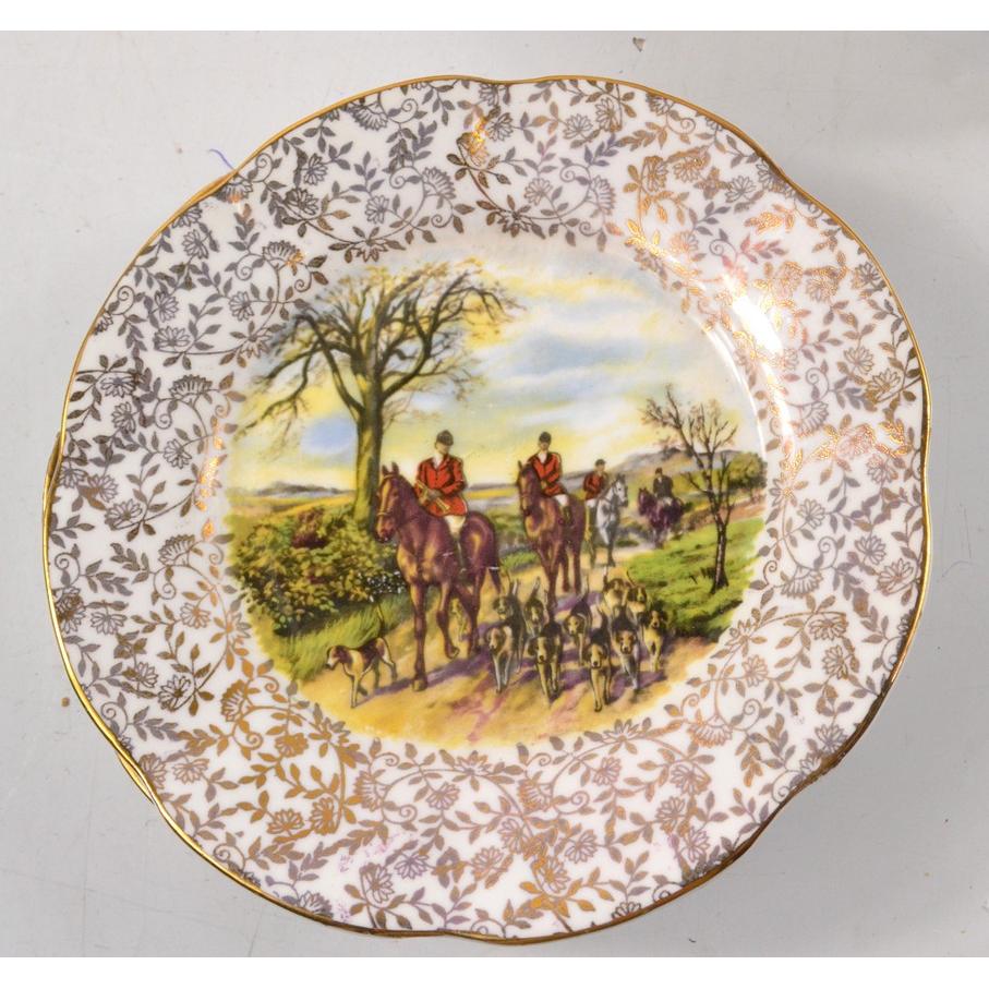 ASHLEYS bone china 22KT 6 cup full tea-set depicting hunting scenes