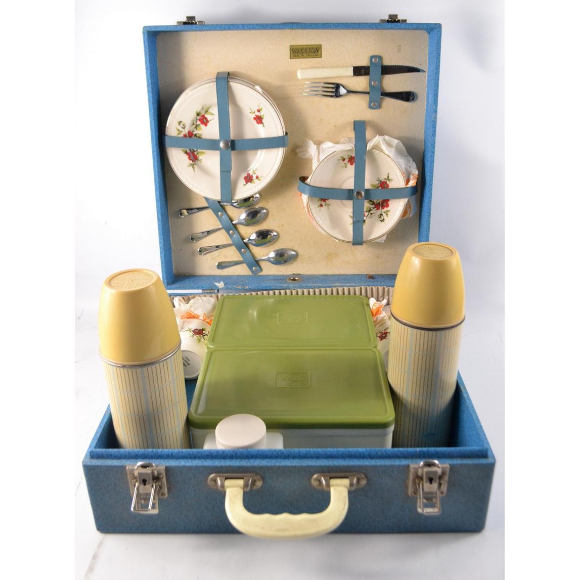 A vintage BREXTON picnic case and contents, flask etcL: 40cm approx W: 38cm approx