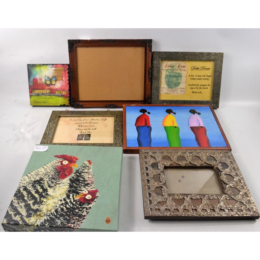 A collection of photo frames, average size is 26cm x 22cm and a framed painting