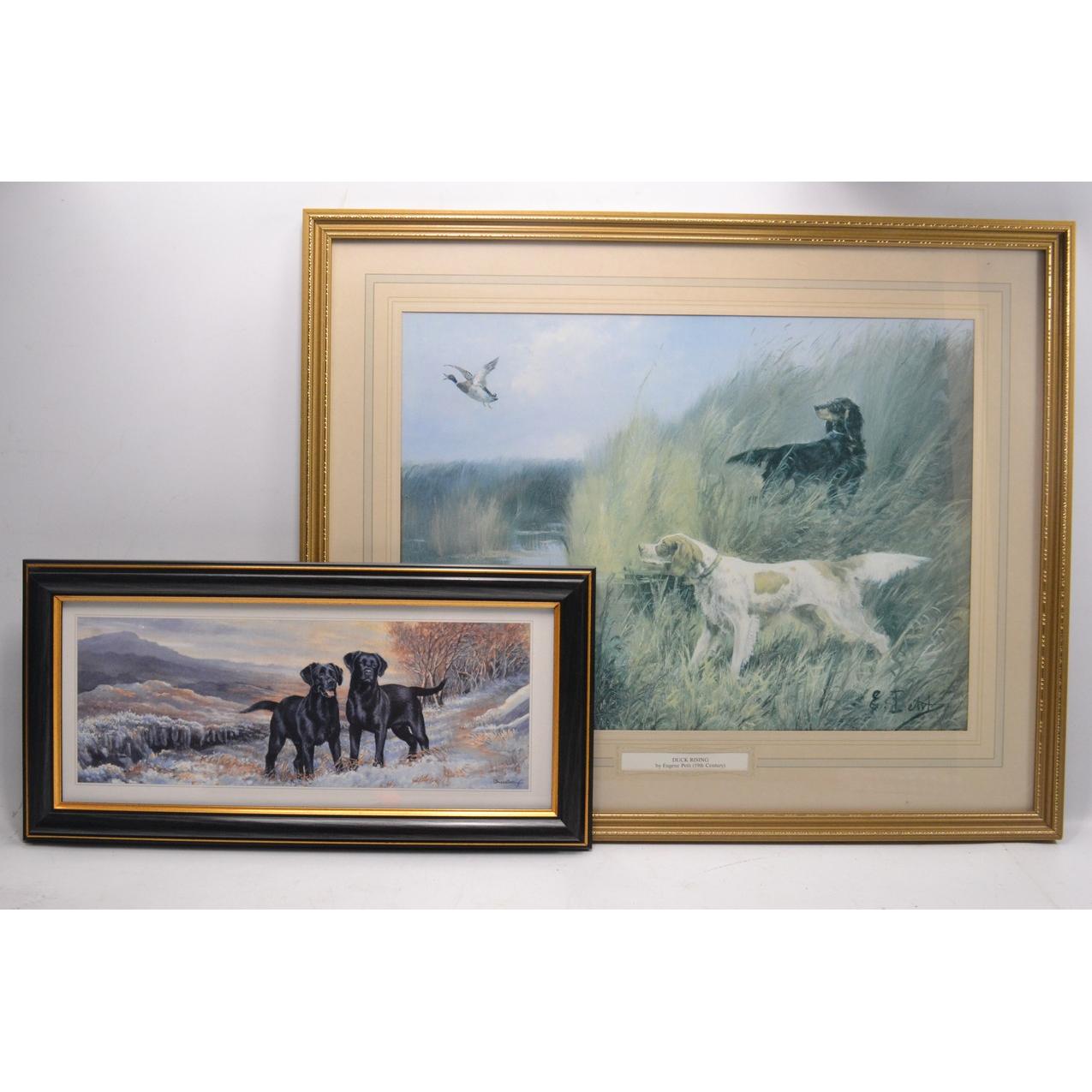 2 hunting scenes prints, larger picture 52cm W x 38cm H, and the samller 39cm x 19cmApprox 1 pieces