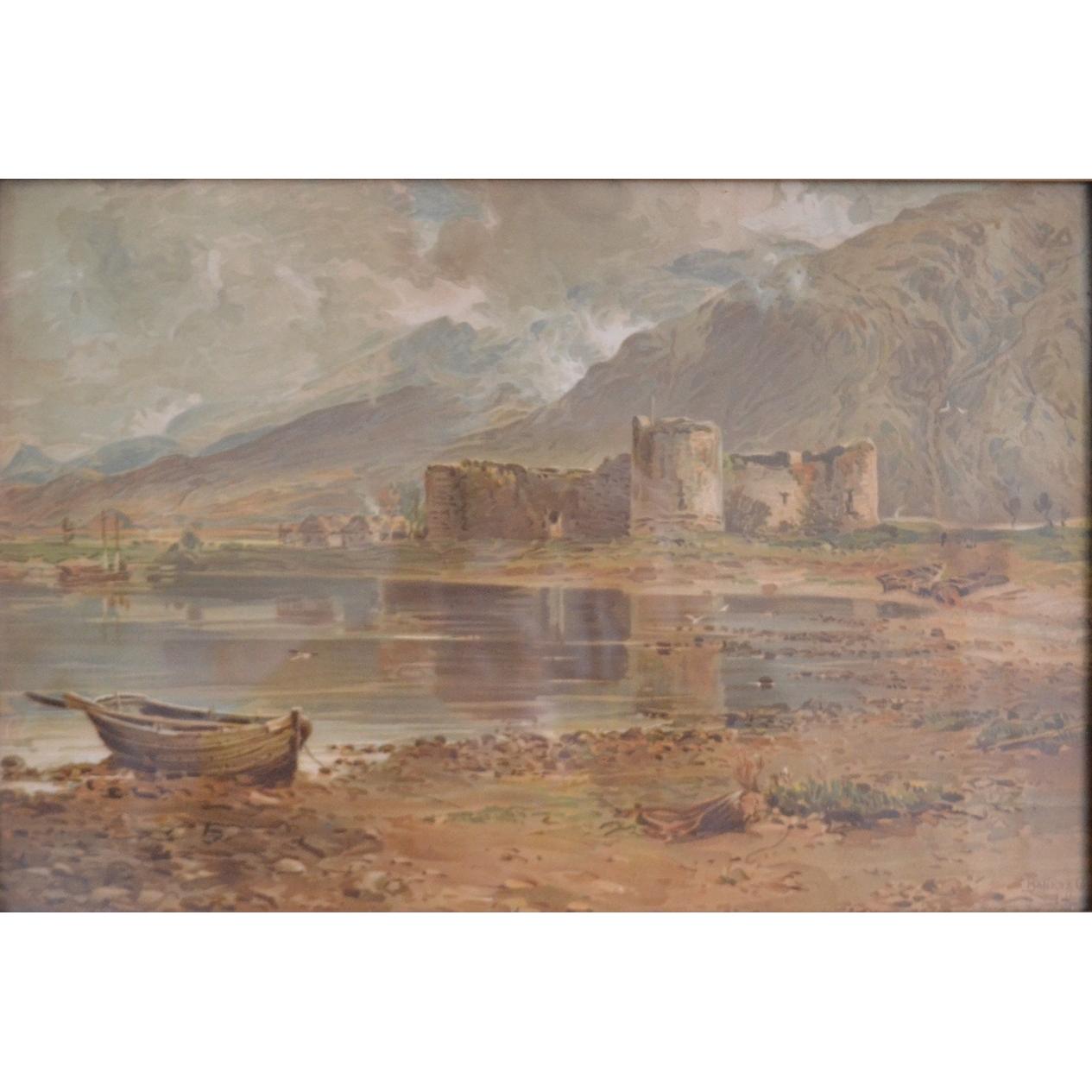 A Victorian gilt framed picture with a rural castle scene bottom right corner BANKS & COL: 23cm approx W: 34cm approx