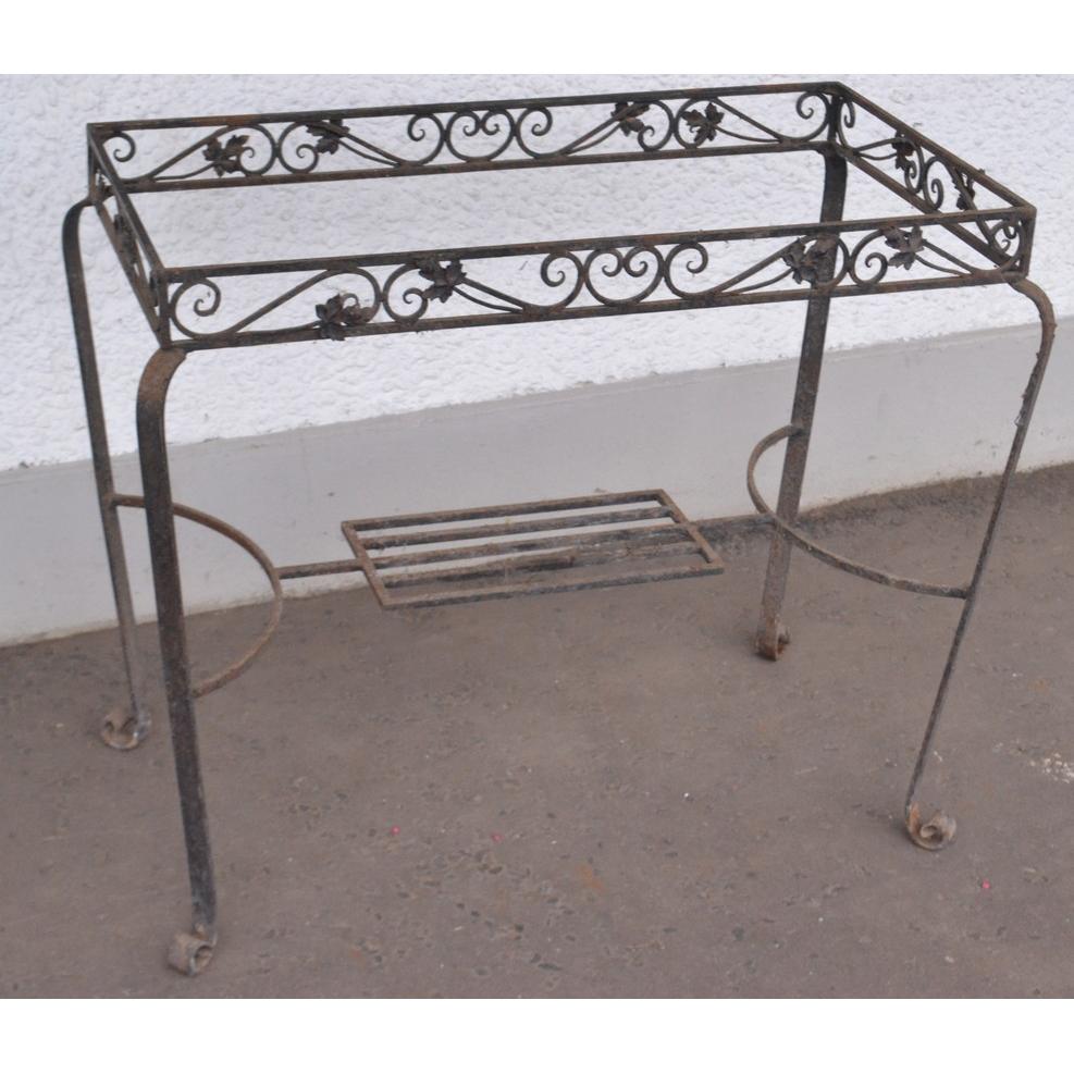 Unusual cast iron style old table missing its top! An ideal garden feature..!L: 80cm approx W: 42cm approx H: 70cm approx