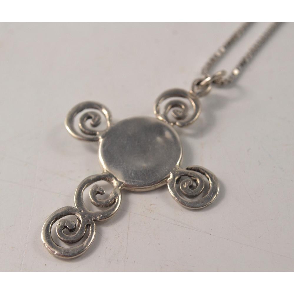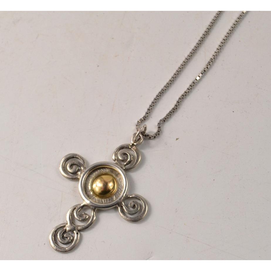 925 silver necklace with swirling design cross pendant with yellow metal centerL: 5cm approx