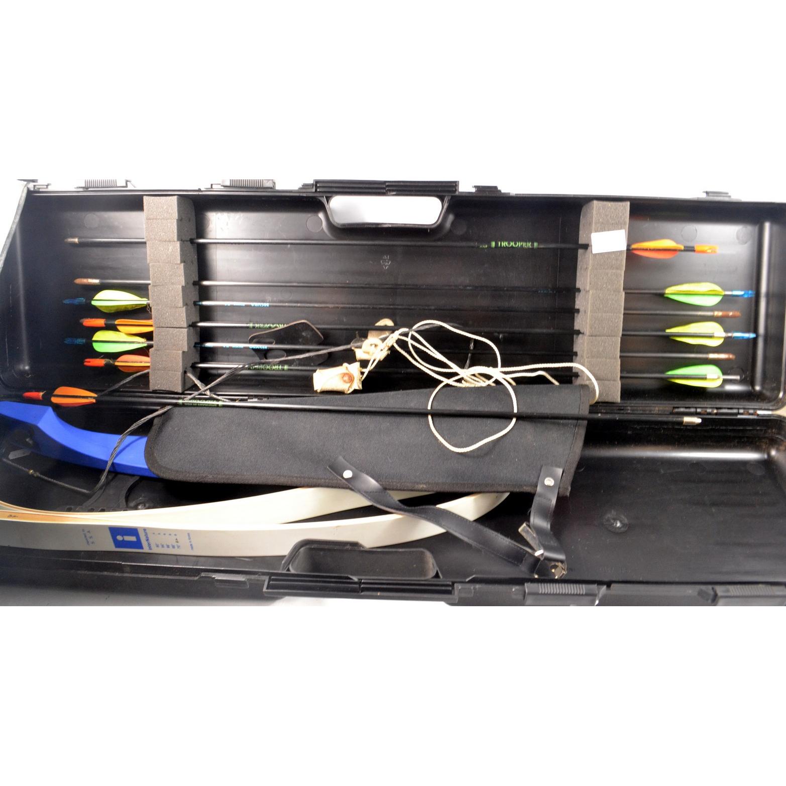 Cased set of Archery bow and various arrows