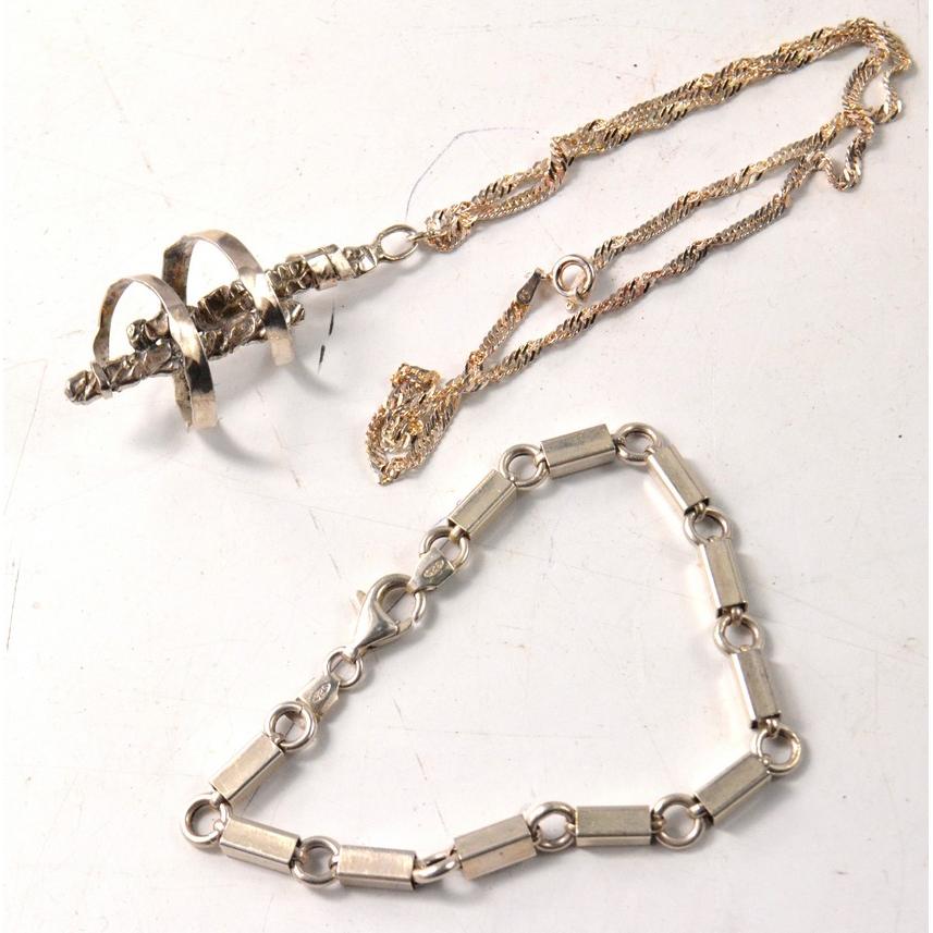 Two pieces of 925 jewellery. Link style bracelet stamped Italy and a 925 silver necklace with white metal spiral design