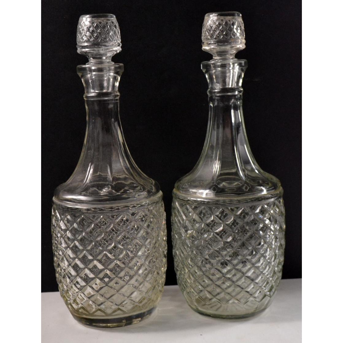 2 Vintage pressed glass decanters with stoppers, both same height