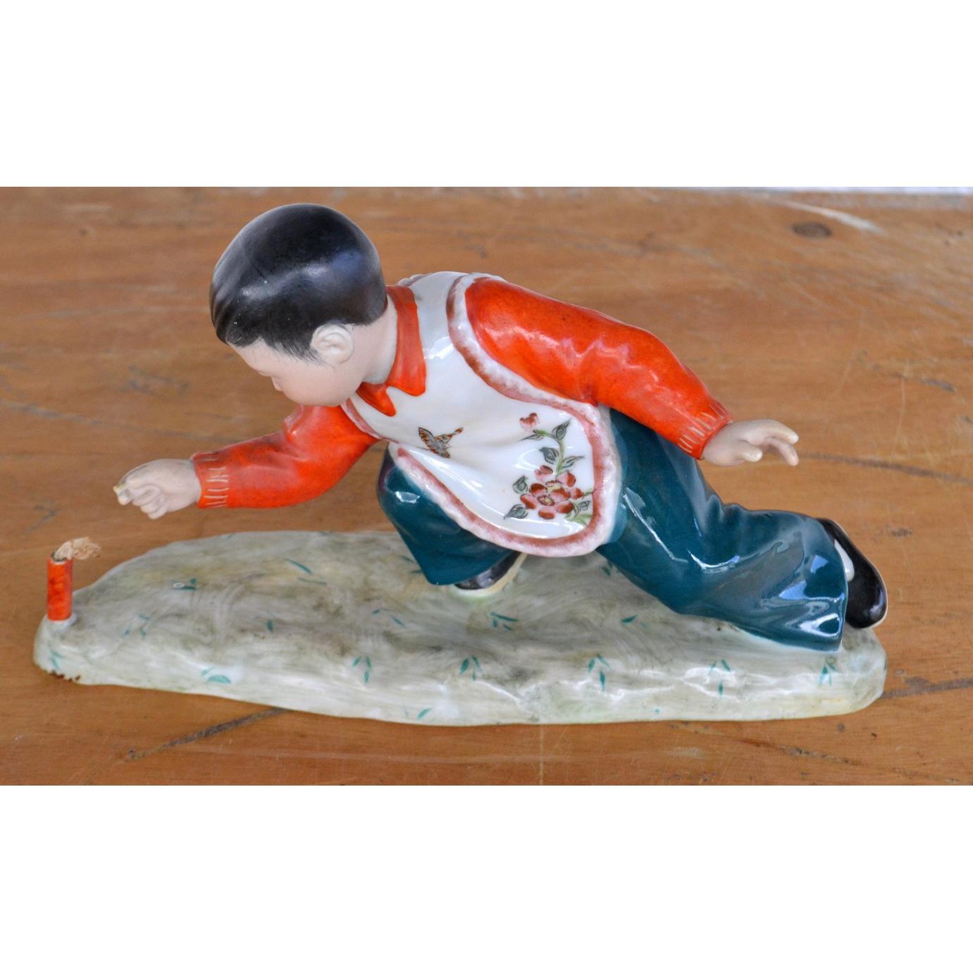 UNUSUAL Oriental figure of a boy lighting a fire cracker L 22cm approx