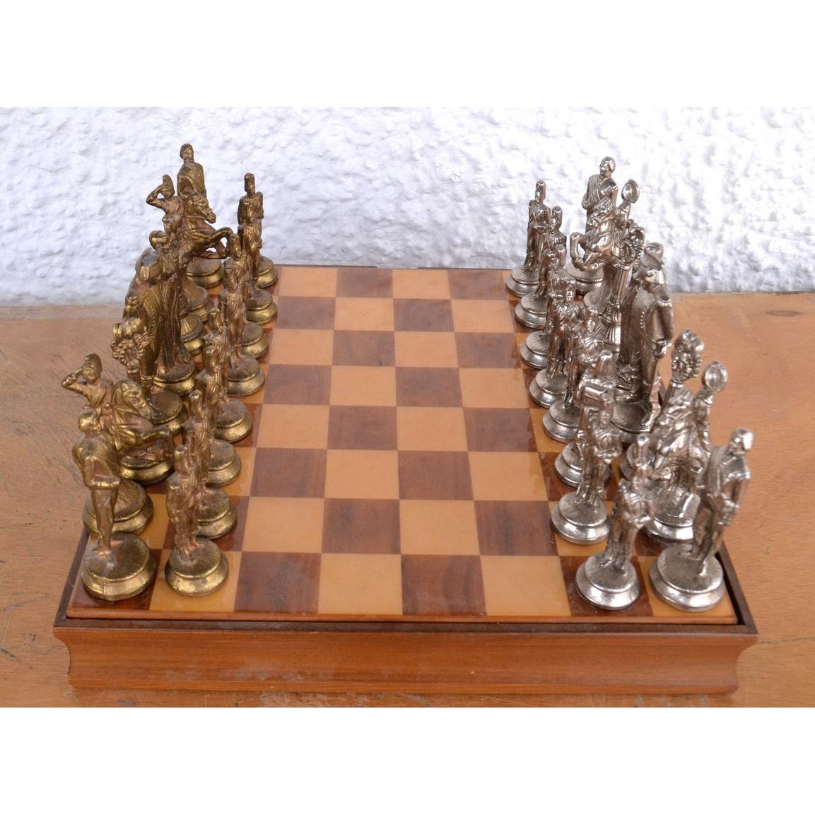 SUPER QUALITY! Chess and draughts set, with brass style and white metal opposing side chess piecesApprox 1 pieces