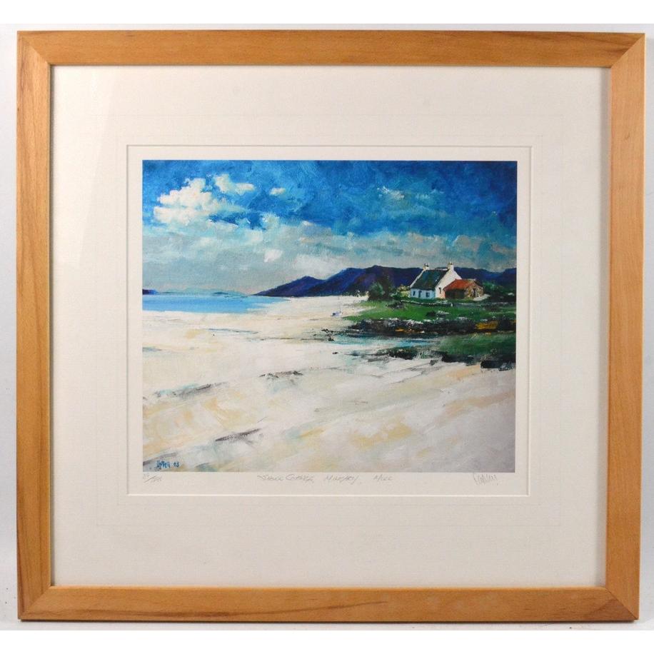Signature indistinct limited edition print titled 'Shore Cottage, Milgary, Mull'. 39/295. Signed in pencilW: 51cm approx H: 48cm approx