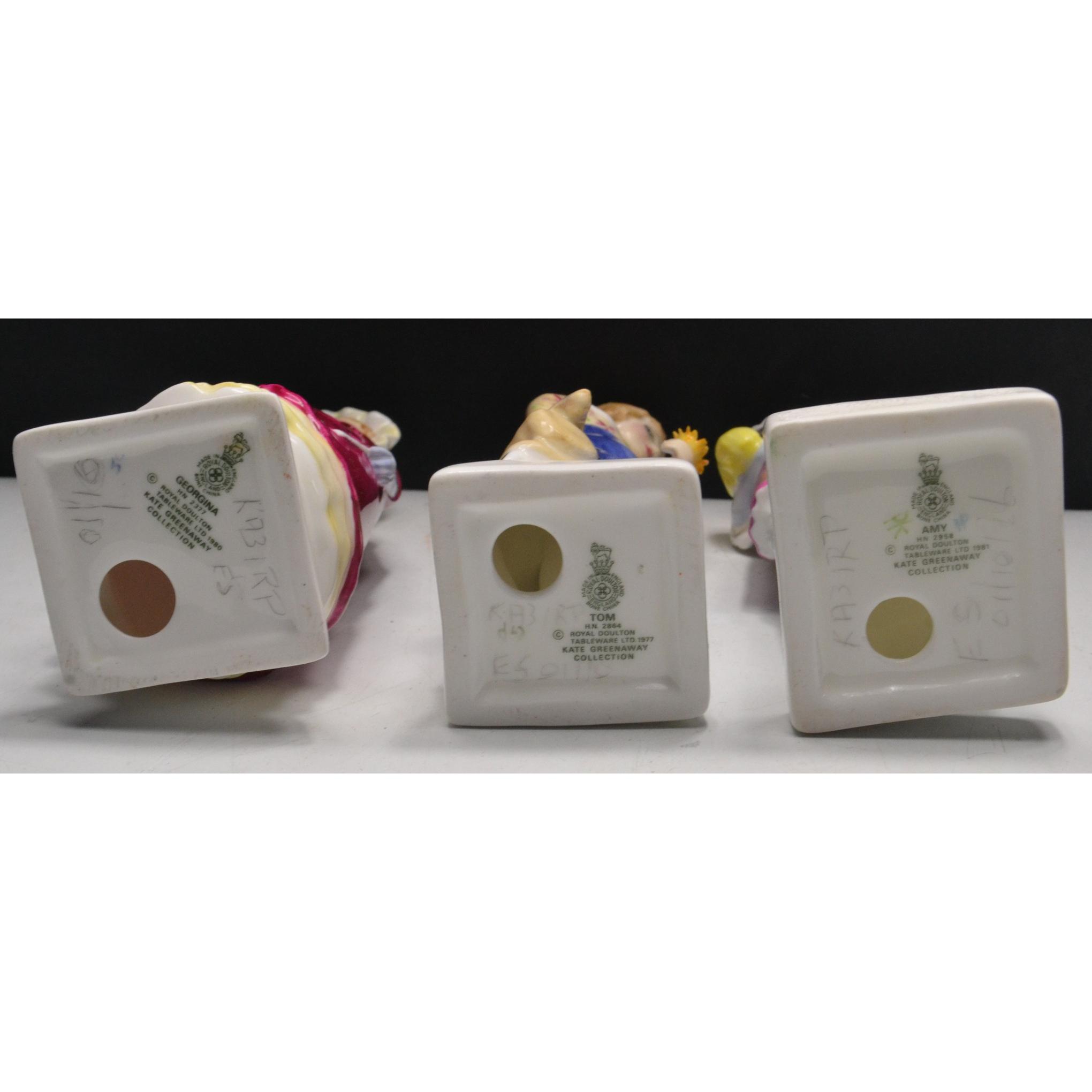 Selection of 3 Royal Doulton Kate Greenway designed figures. HN 2377 'Georgina', HN 2958 'Amy', HN 2864 'Tom'
