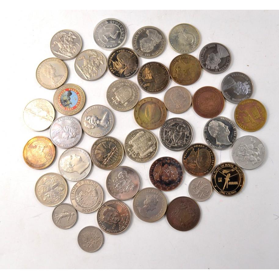 Large amount of collectable crowns to include Queen Elizabeth Gibraltar 2009 famous explorers, ECU coins and lots more Approx 2 pieces